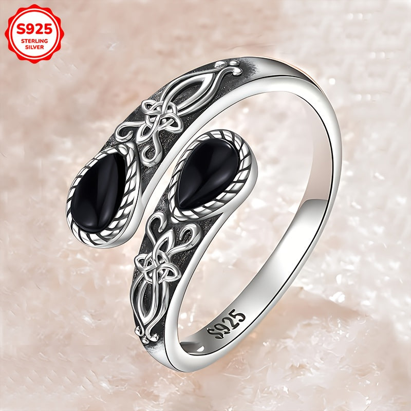 This beautiful spoon ring is made of 925 sterling silver with agate stone. Its bohemian style and adjustable size make it suitable for daily wear and as a birthday gift. The Celtic knot design adds a vintage touch to the ring.