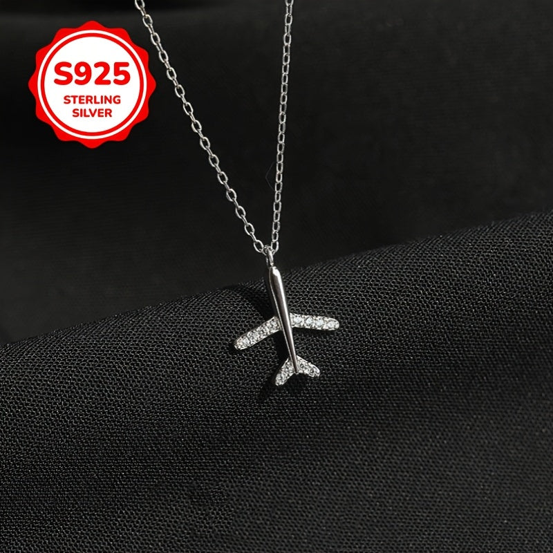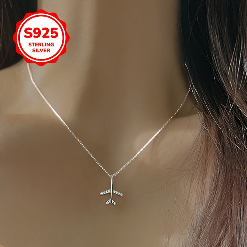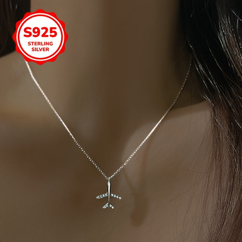 This 925 silver airplane pendant necklace is hypoallergenic and versatile, suitable for all 12 months. It is a creative and stylish collarbone chain that adds a touch of elegance to any outfit.