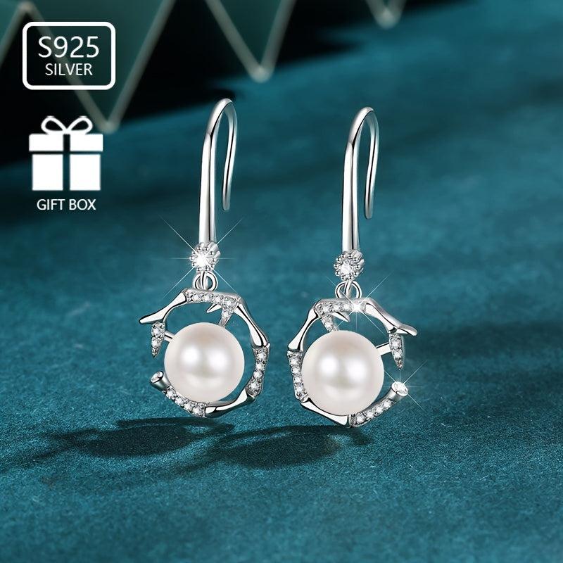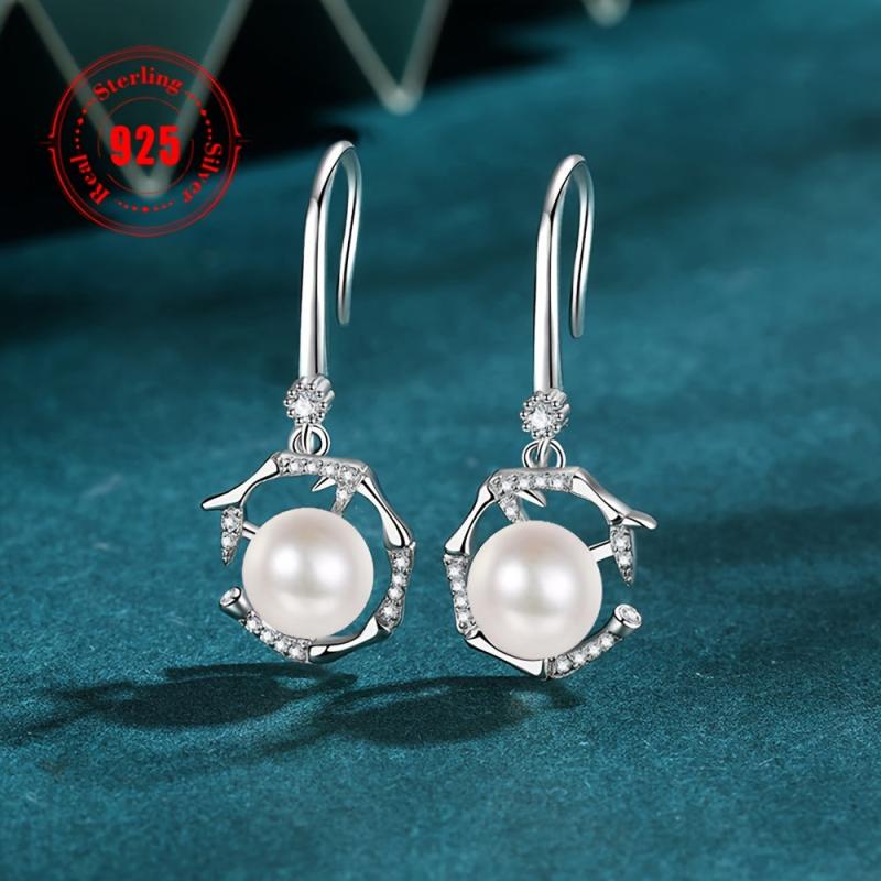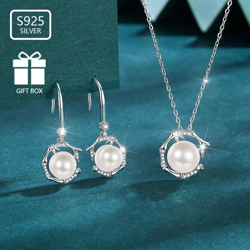This elegant jewelry set is made of 925 sterling silver with a bamboo joint design and features lustrous pearls. Perfect for all occasions, it makes a great gift for women.