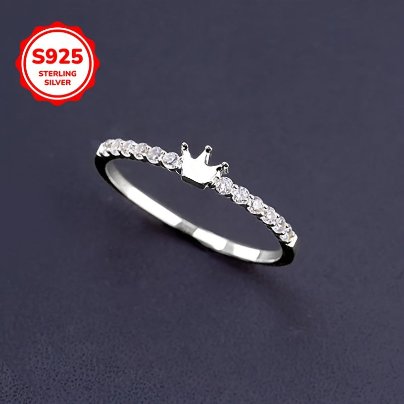 Elegant 925 silver ring featuring a crown design with synthetic zirconia, perfect as a birthday or Valentine's gift for women.