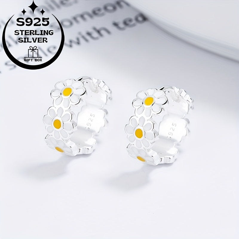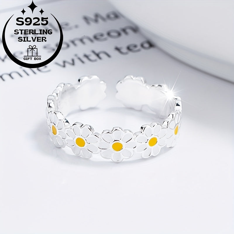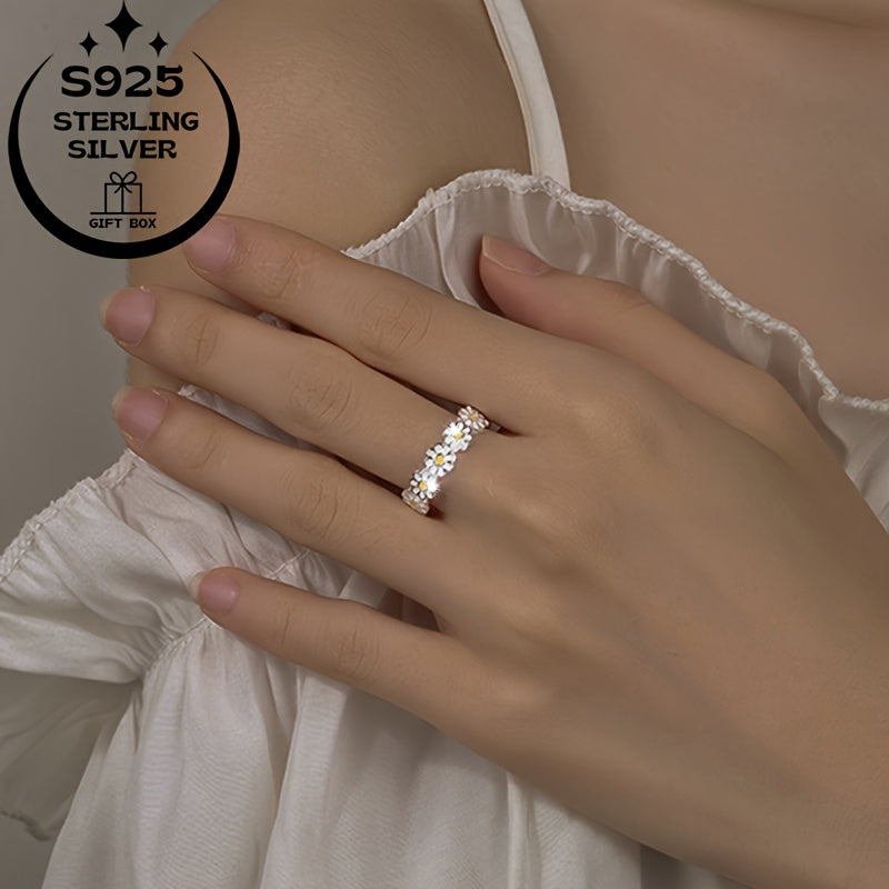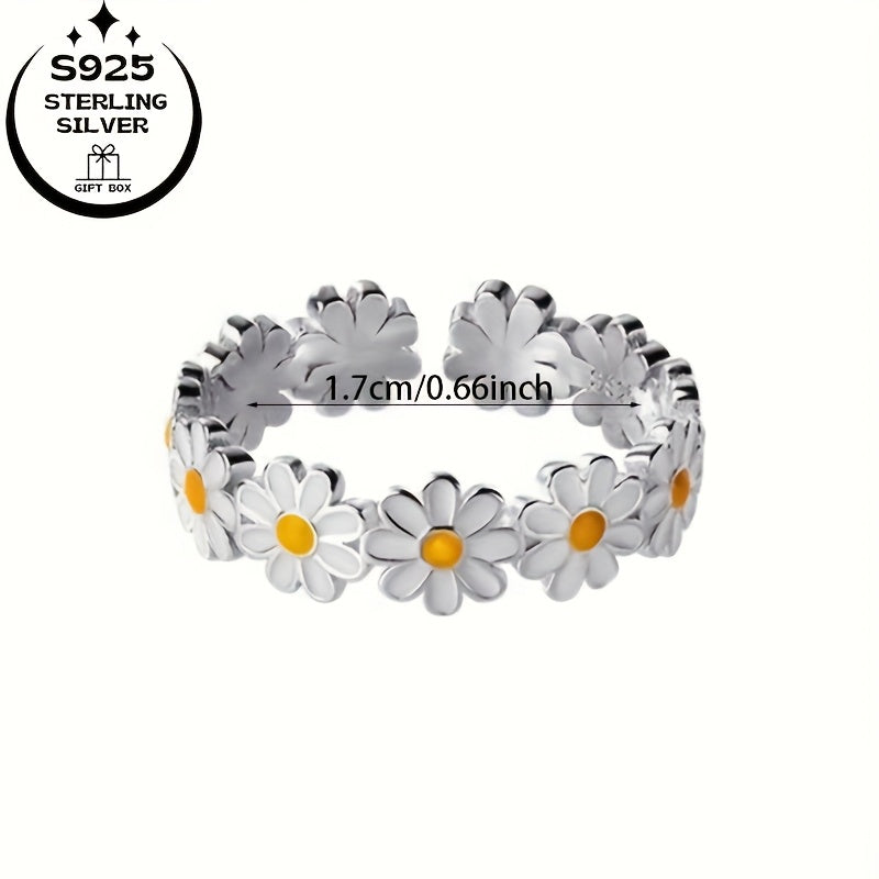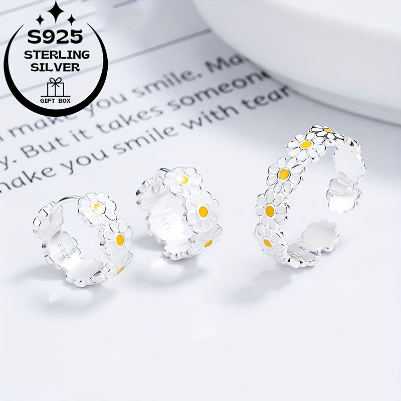 925 Silver Daisy Classic Set: Ring & Earrings, Ideal Gift for Women
