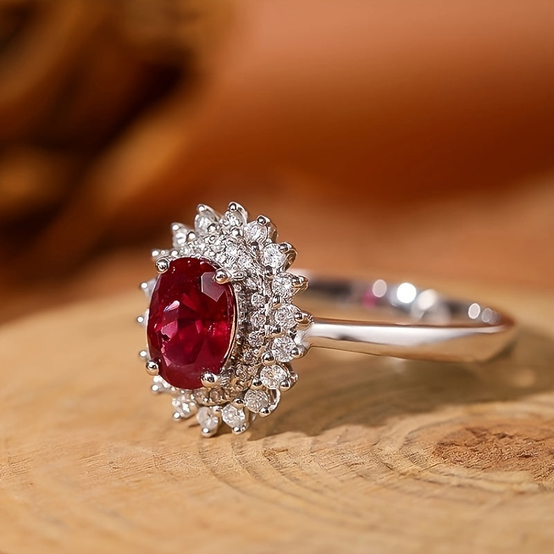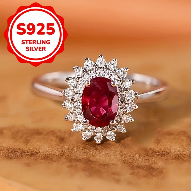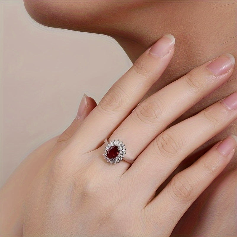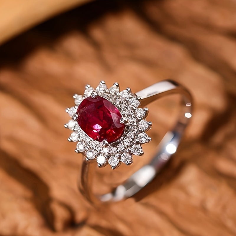 This stunning 925 silver oval ring features a flower design with four prongs. It's a perfect gift for engagement or any special occasion.