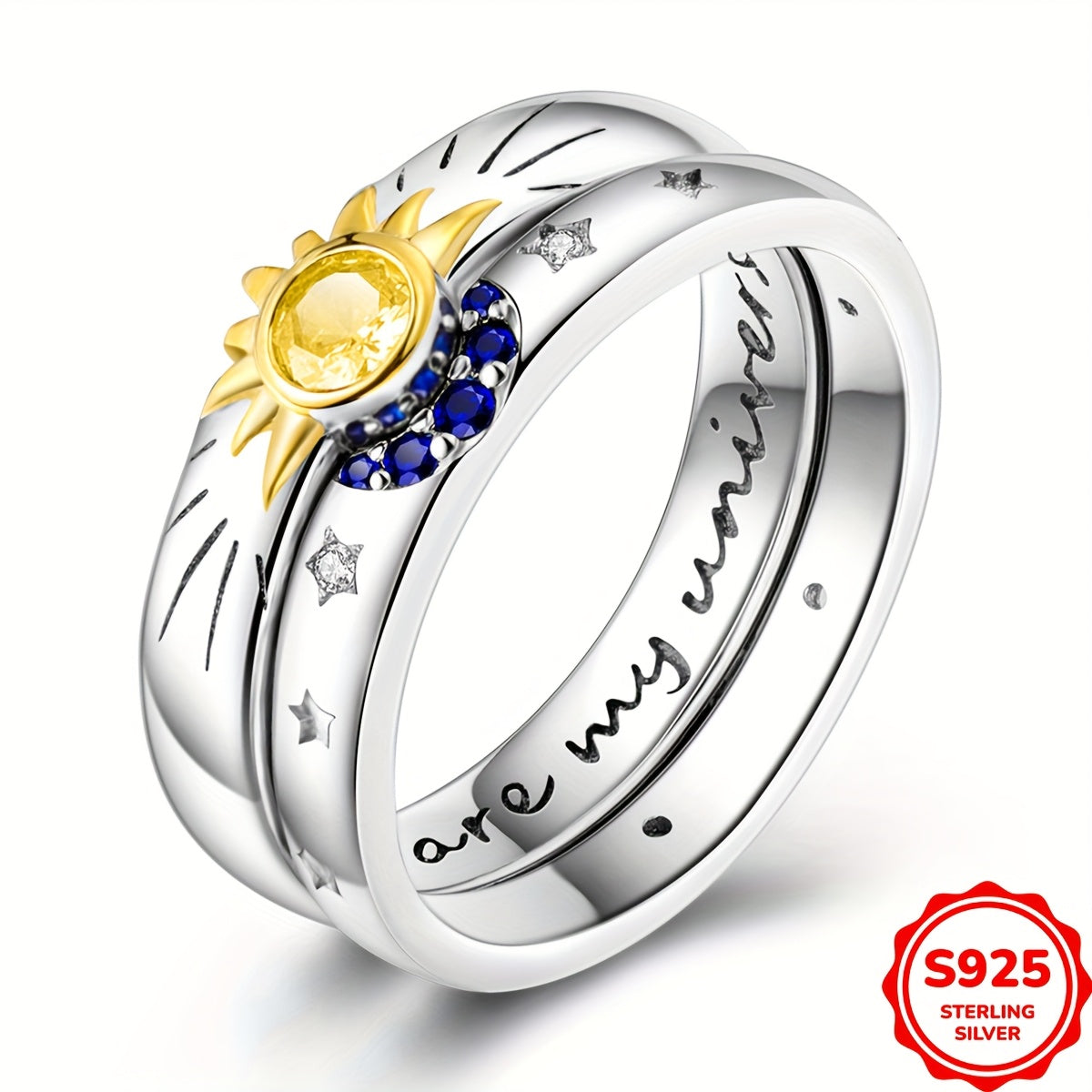 This stunning ring set features a galaxy-inspired design crafted in 925 sterling silver, perfect for weddings, engagements, and birthdays.