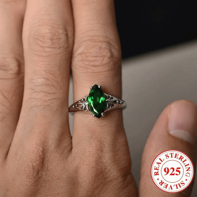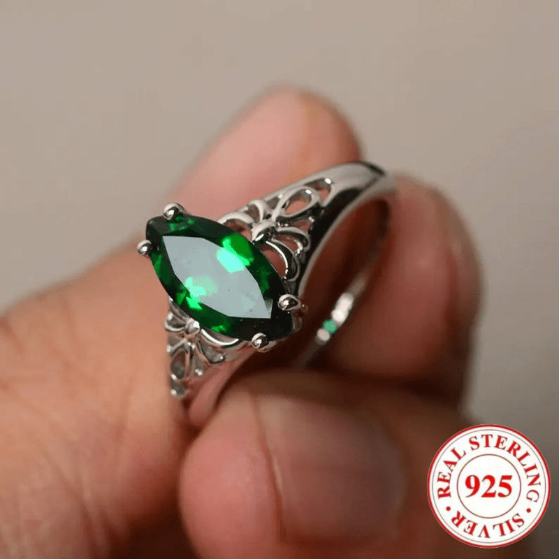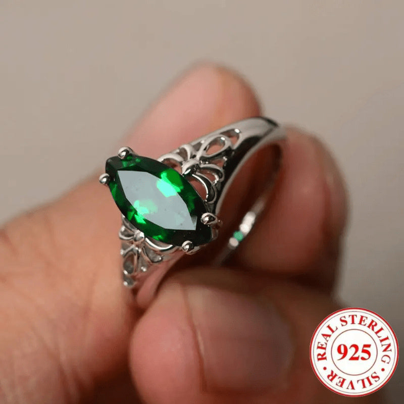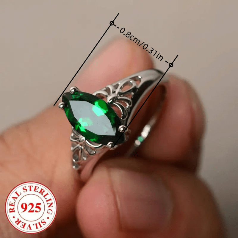 Elegant 925 silver ring featuring a green CZ teardrop design. Perfect for daily wear or special occasions.