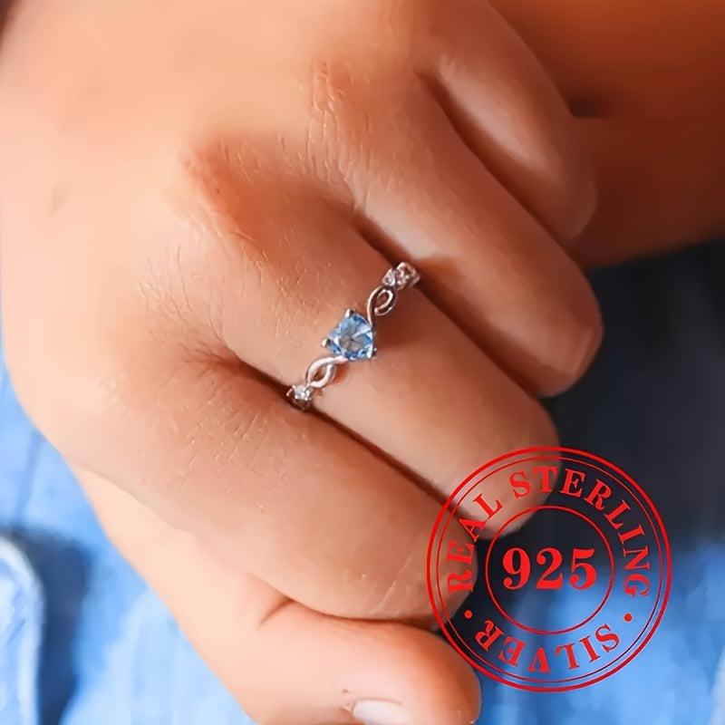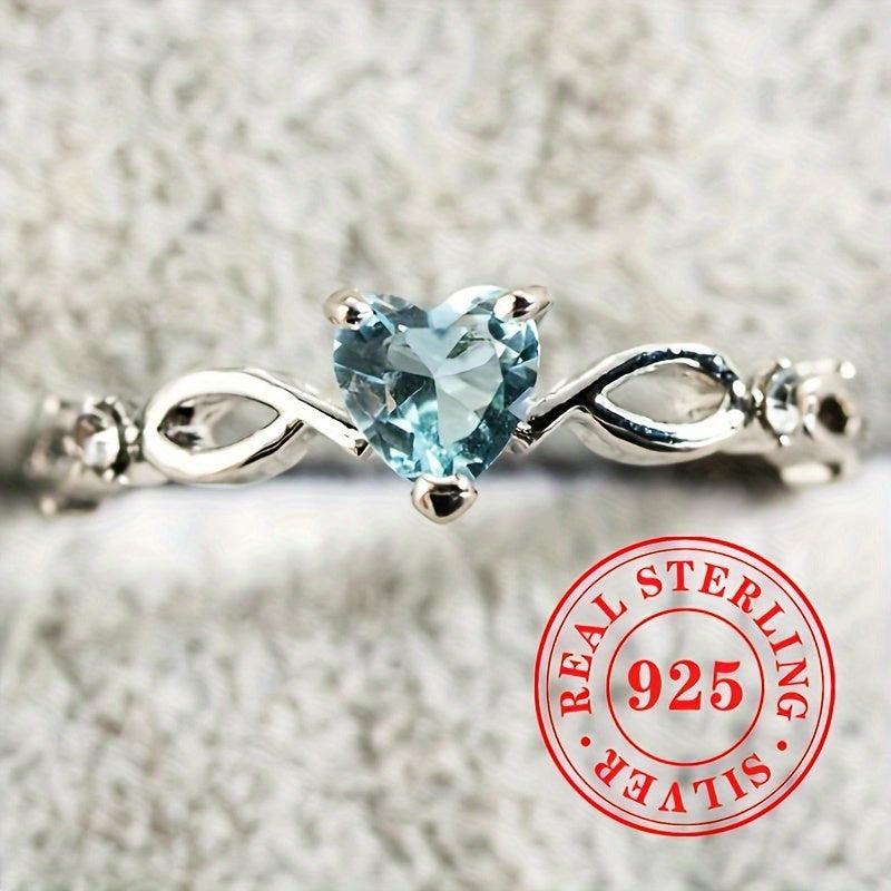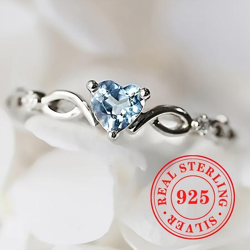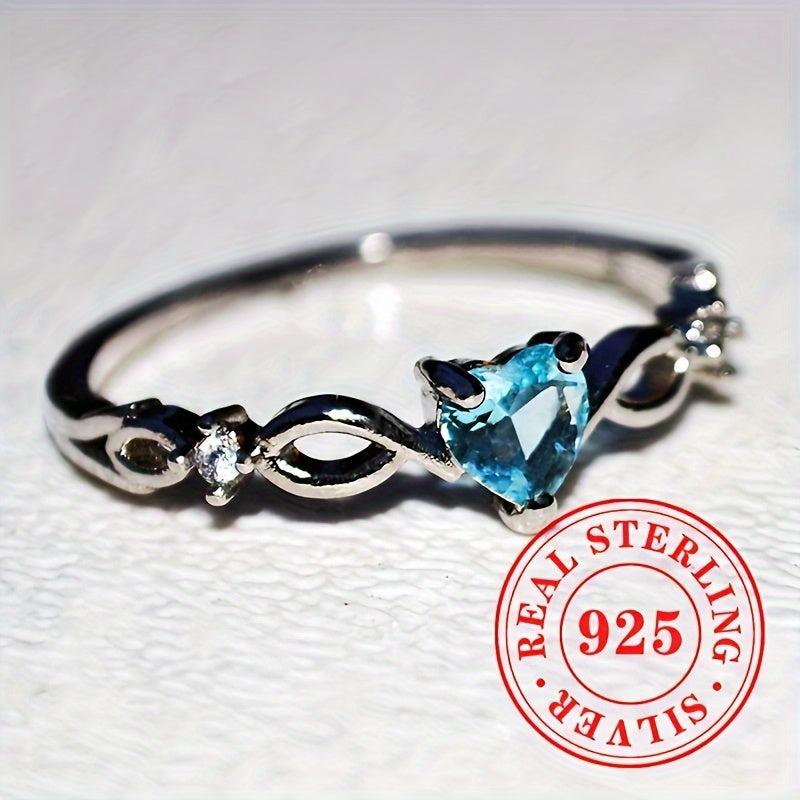This stunning 925 sterling silver ring features a heart-cut synthetic sapphire, perfect for an engagement or wedding. Show your love with this beautiful promise ring.