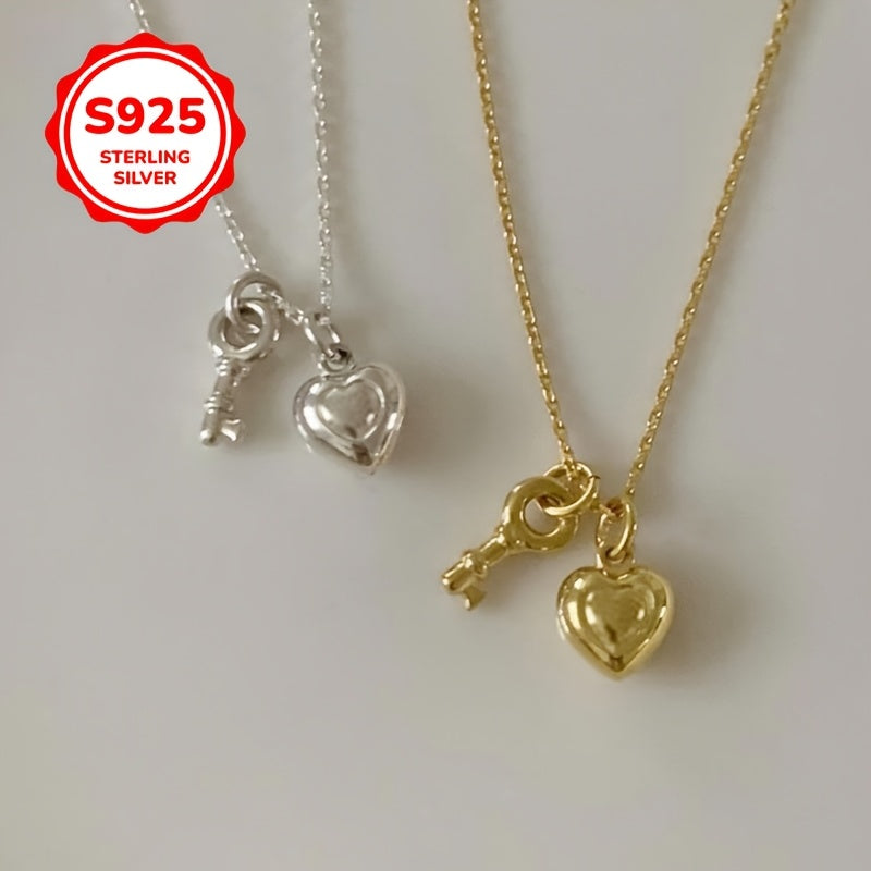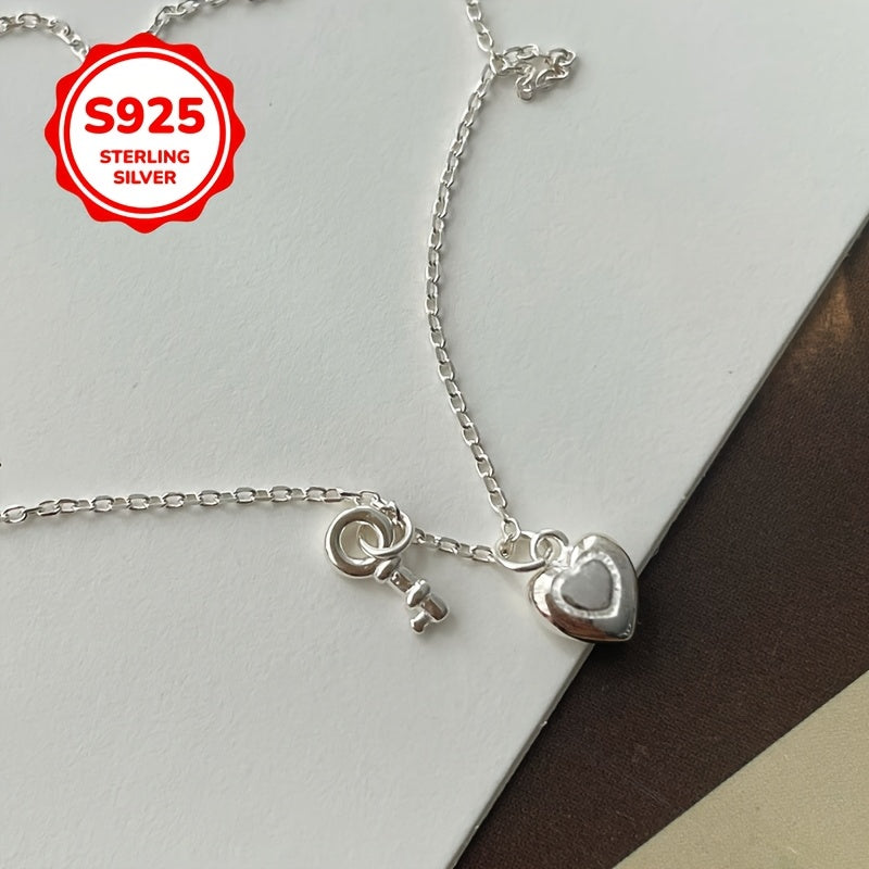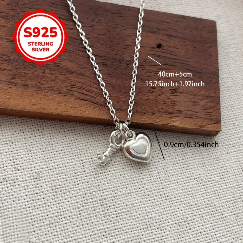 This necklace features a heart key pendant made of 925 silver, suitable for all 12 months. It is lightweight, versatile, and perfect for collarbone chain styling.