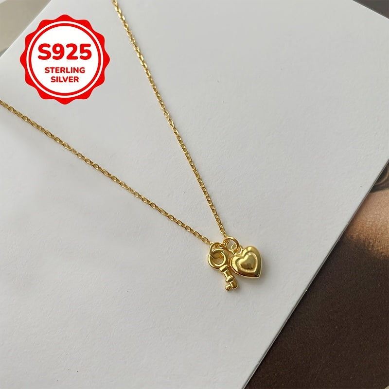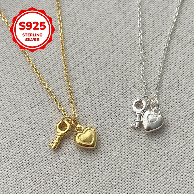925 Silver Heart Key Pendant Necklace Hypoallergenic Minimalist Fashionable