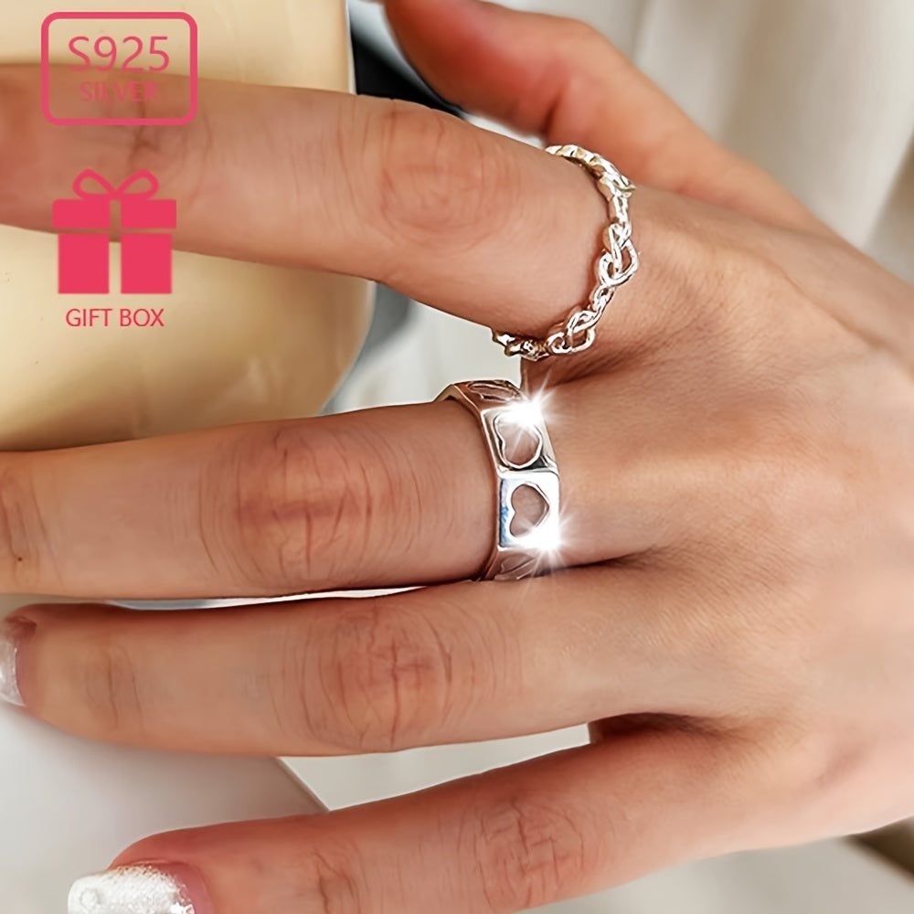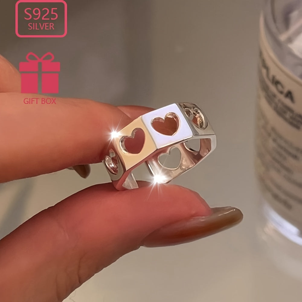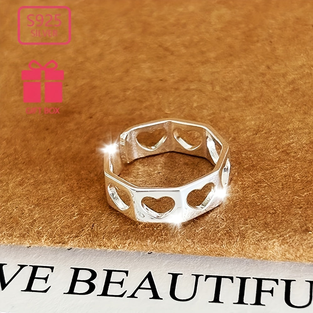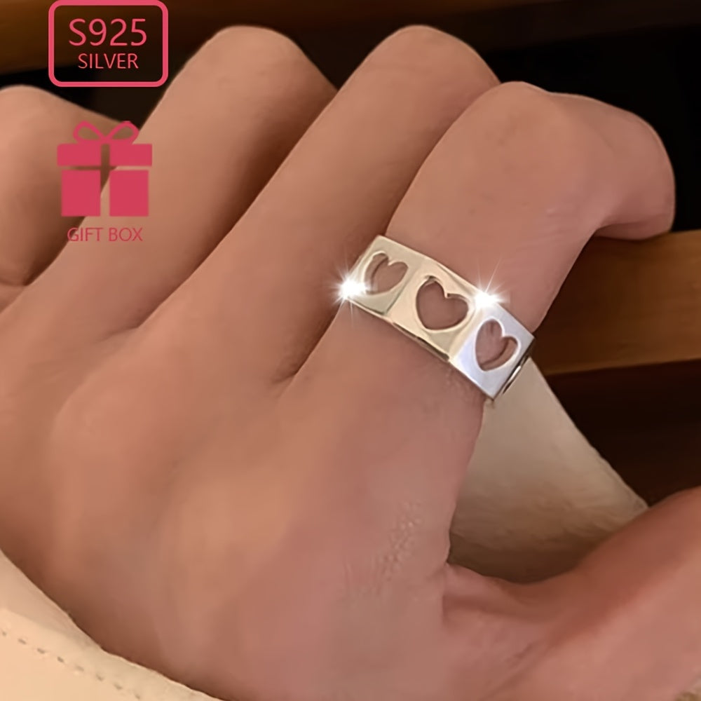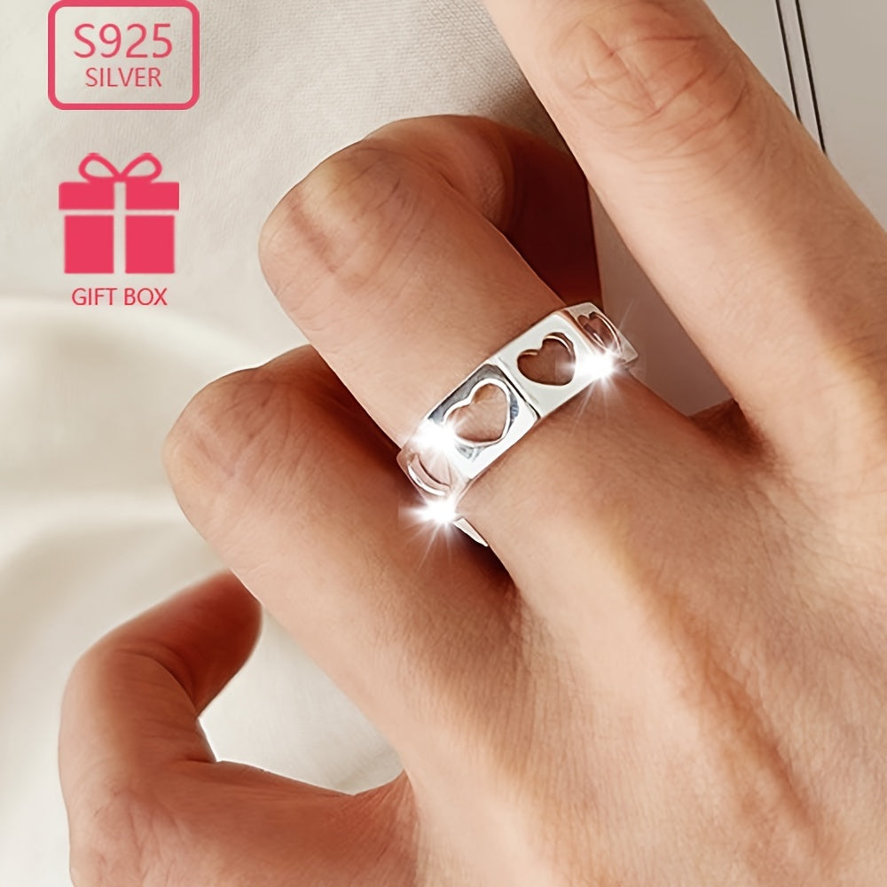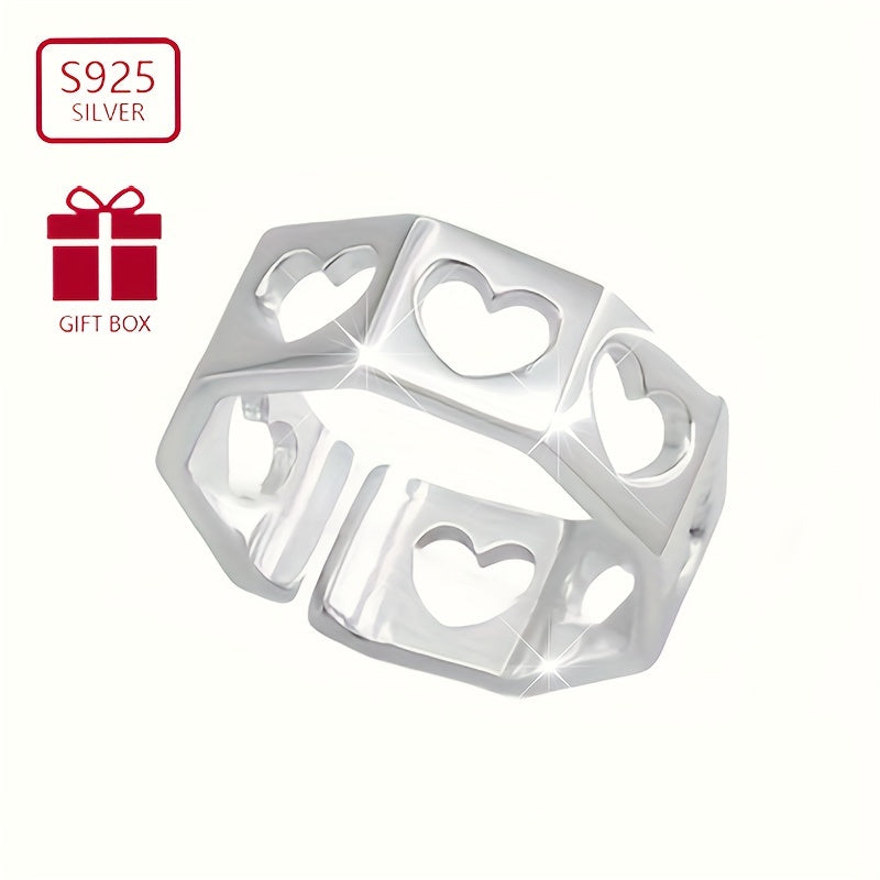 This minimalist hollow heart-shaped ring is made of 925 sterling silver, perfect for gifting to your girlfriend. It is suitable for sensitive skin.