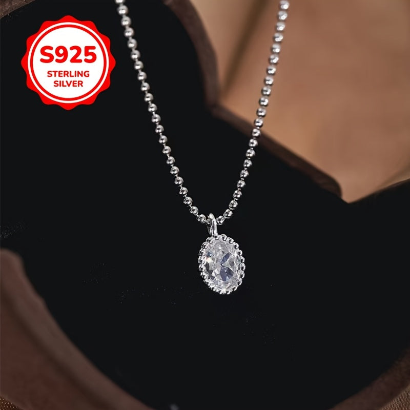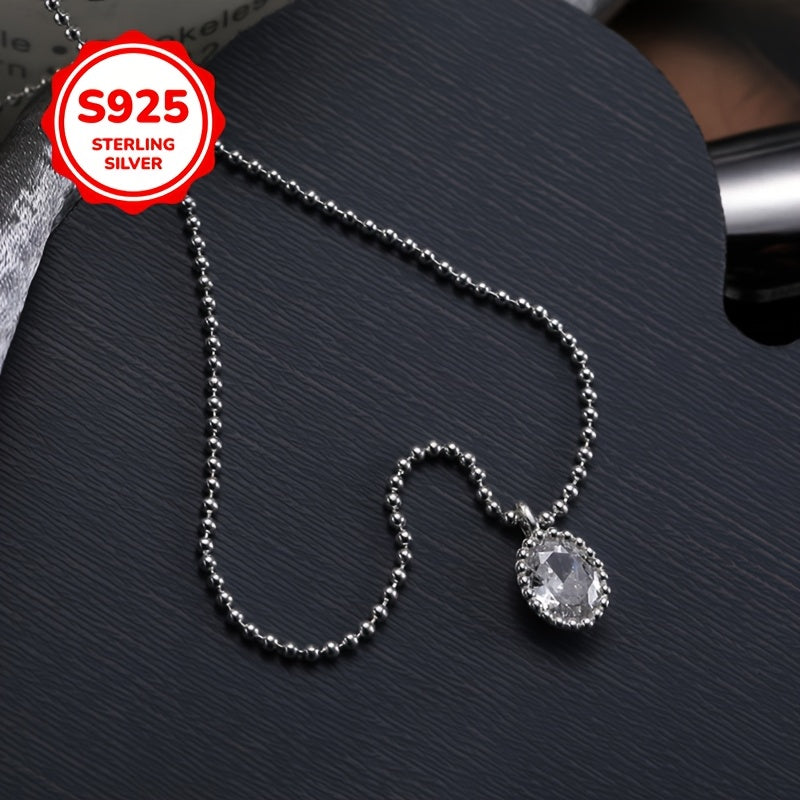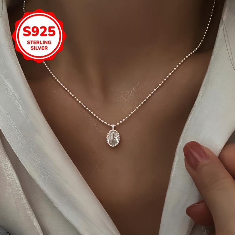 This minimalist and fashionable collarbone chain necklace is made of hypoallergenic 925 silver. Its oval drop pendant adds a creative touch to your outfit, suitable for any occasion.