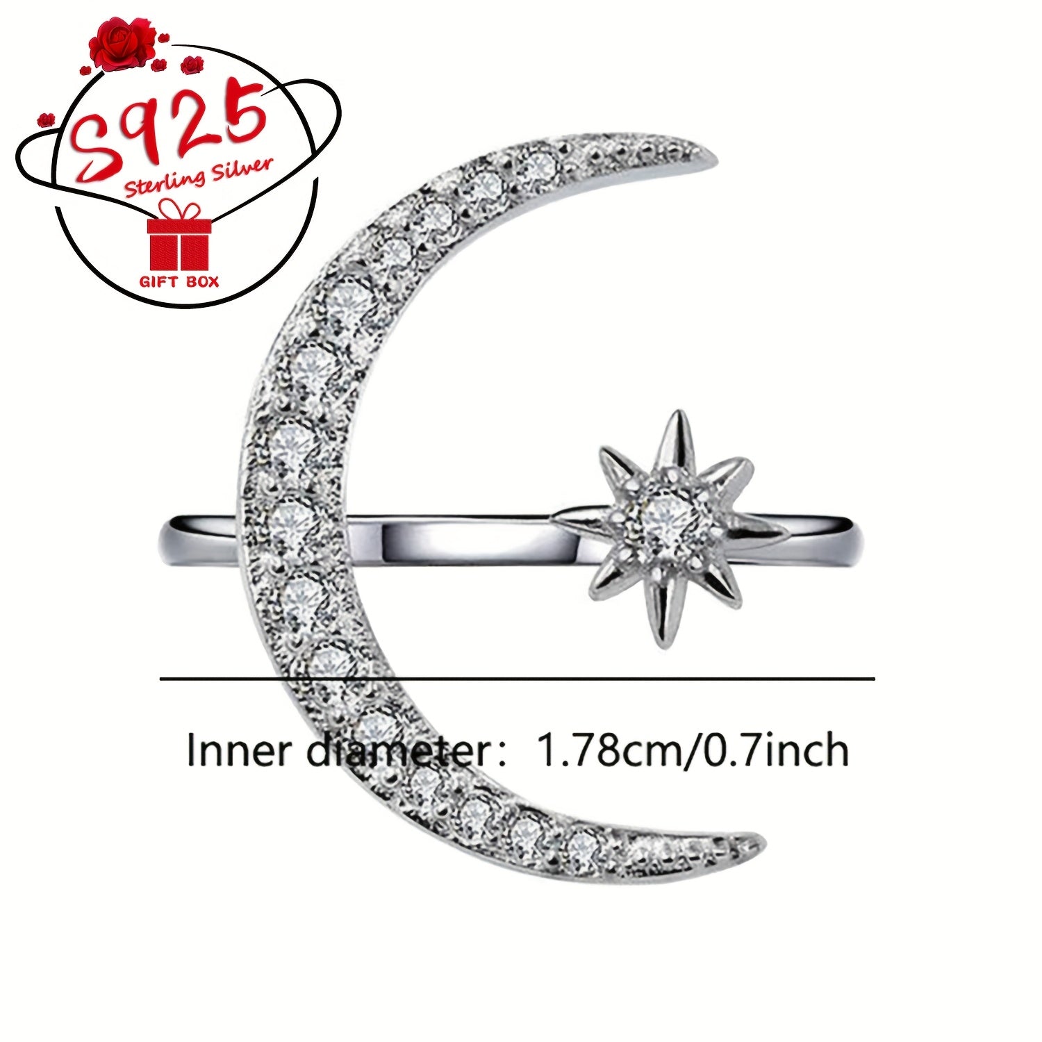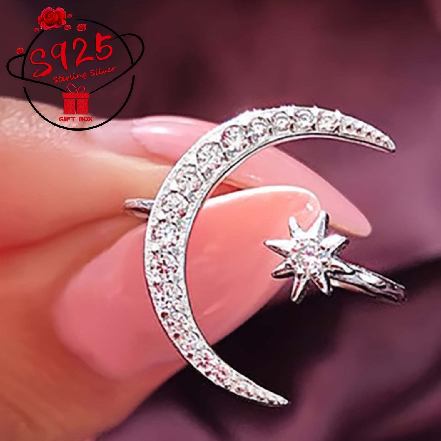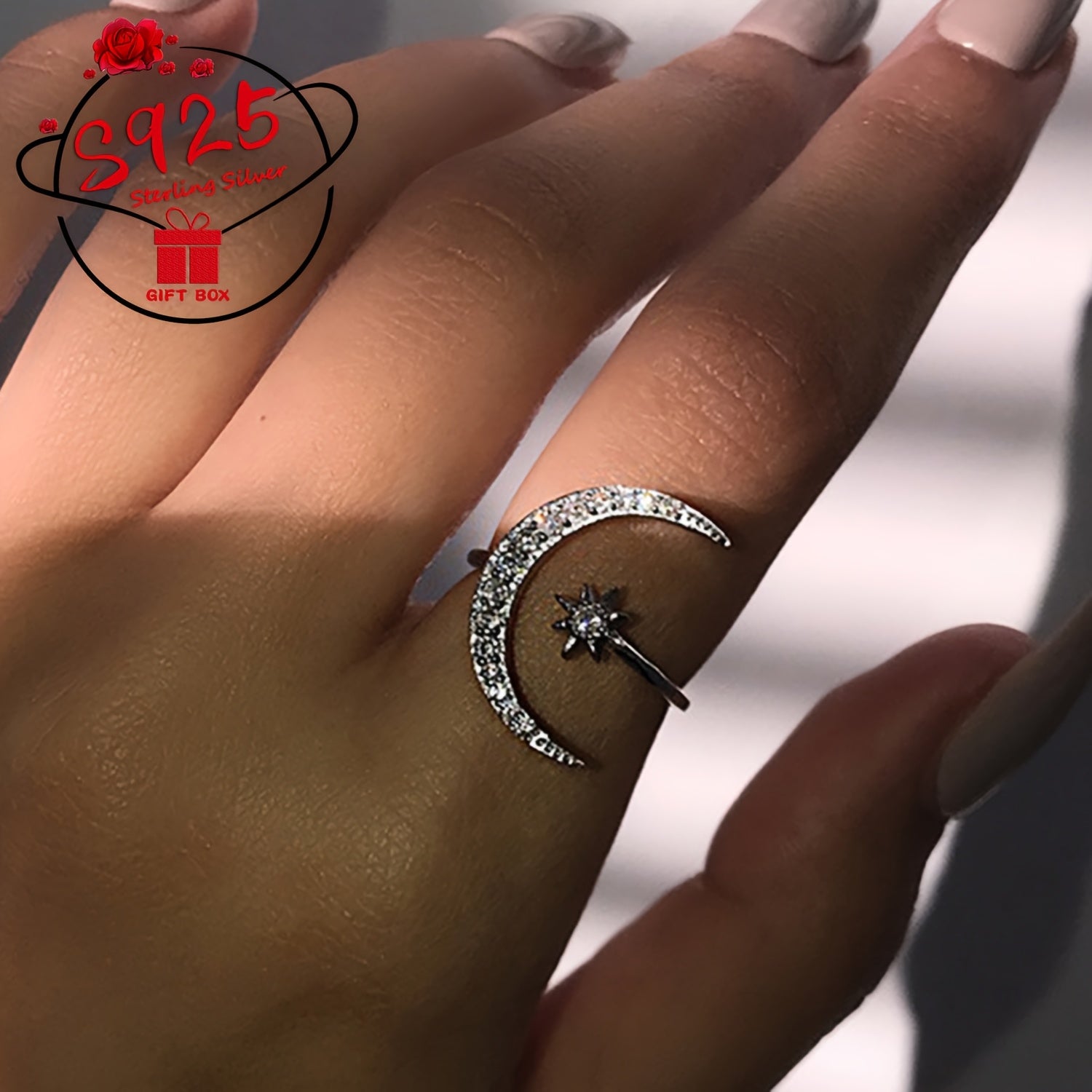 This adjustable ring crafted from 925 silver features a star and moon design, making it a perfect gift for Mother's Day or for wearing on a summer beach getaway.