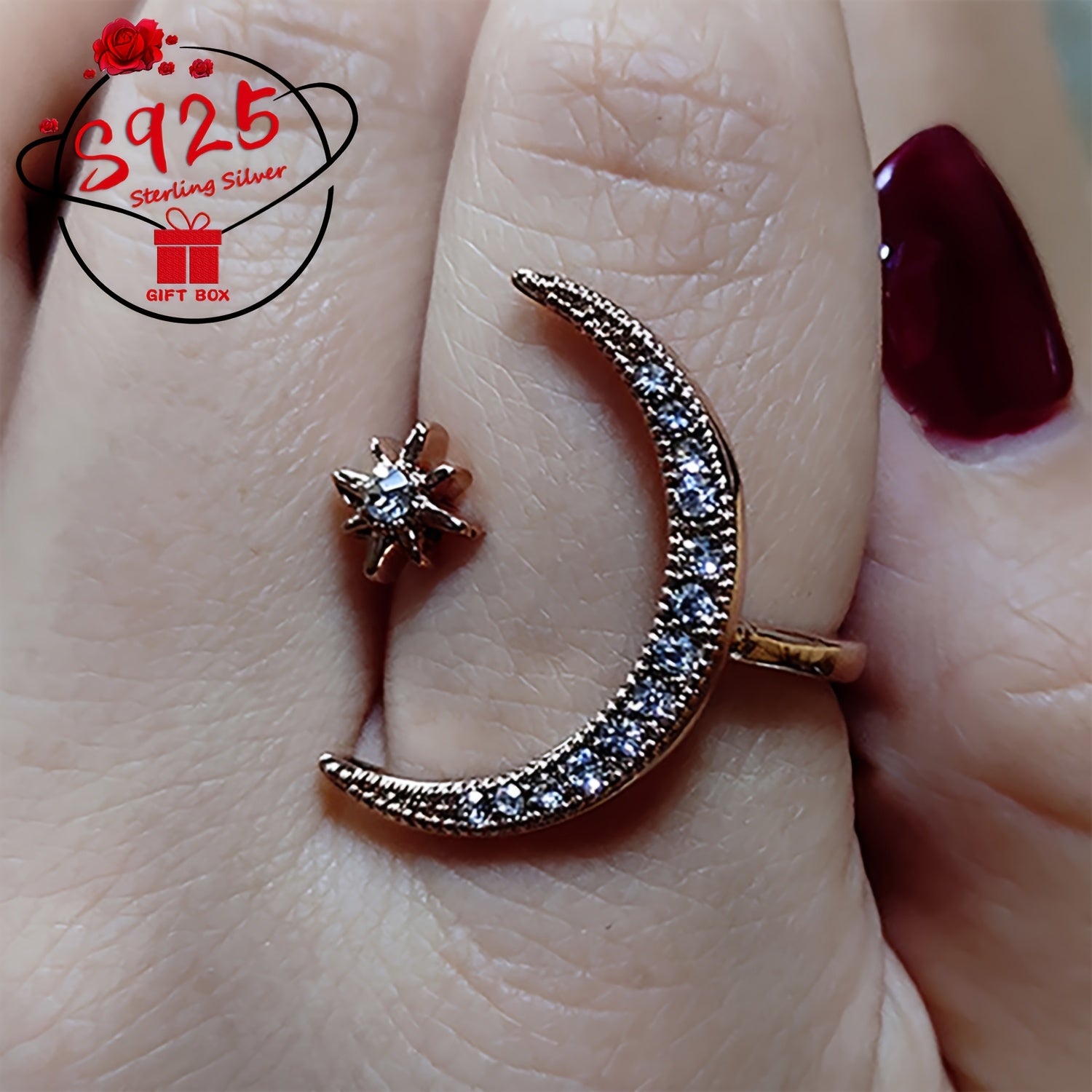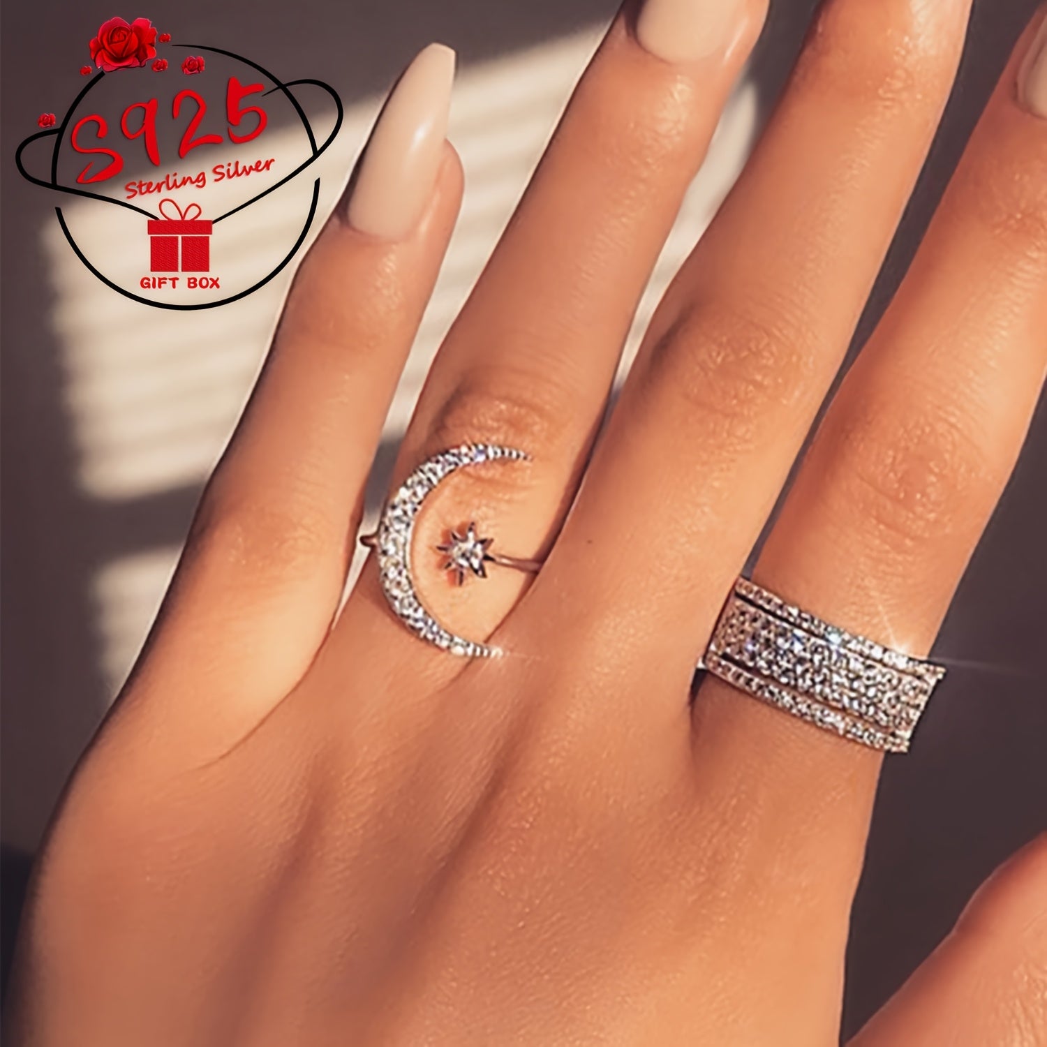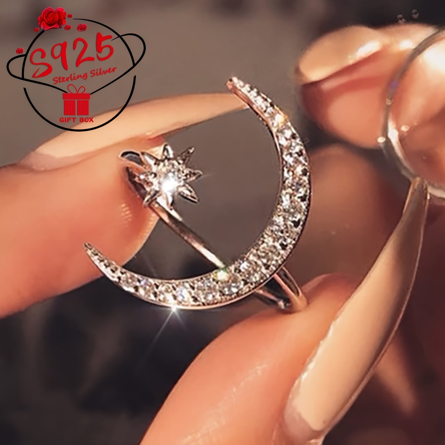 This adjustable ring crafted from 925 silver features a star and moon design, making it a perfect gift for Mother's Day or for wearing on a summer beach getaway.