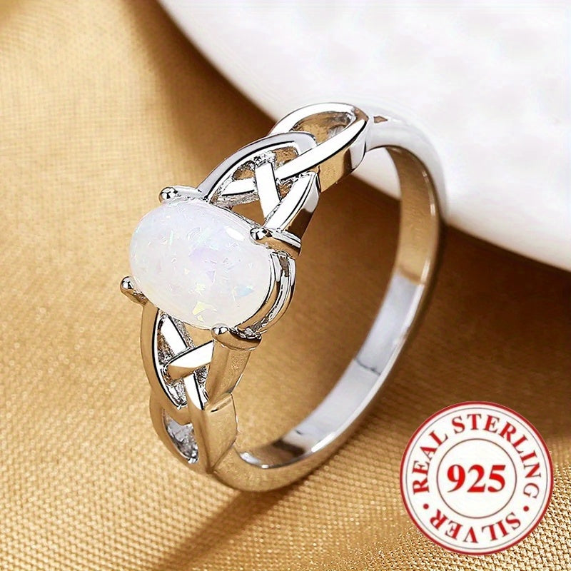Stunning 925 silver ring featuring a synthetic opal oval design. Ideal for daily wear, parties, banquets, and engagements.