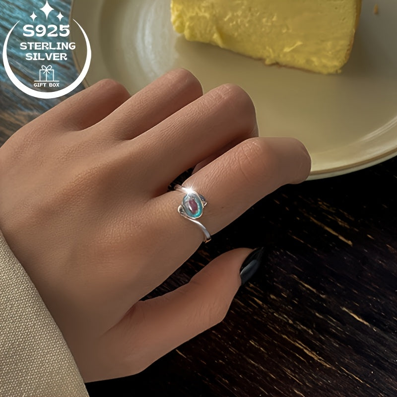 Elegant and versatile adjustable ring crafted from 925 sterling silver featuring a stunning iridescent agate stone. Perfect for daily wear or special occasions.