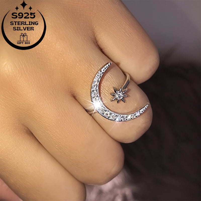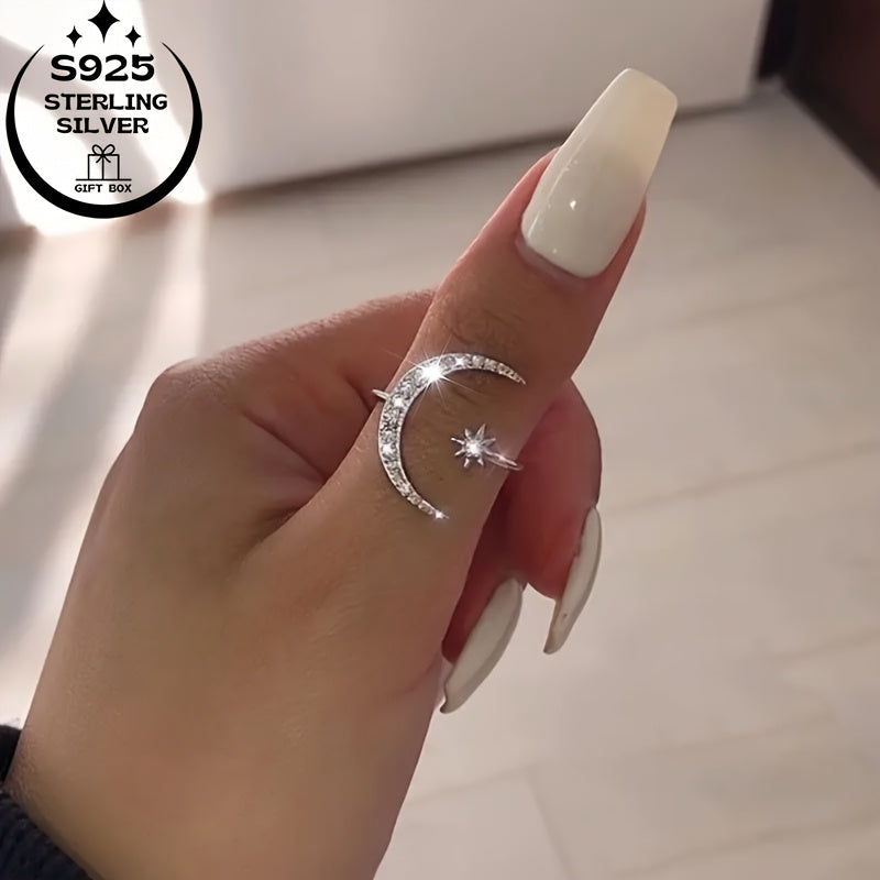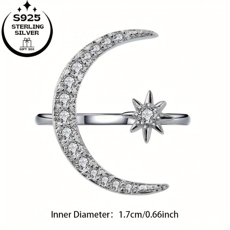 925 Silver Star & Moon Ladies Ring, Adjustable Size