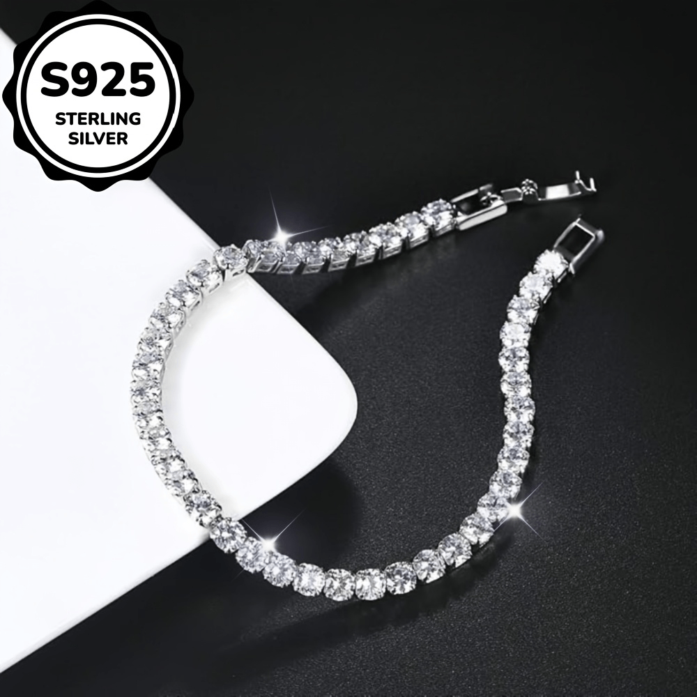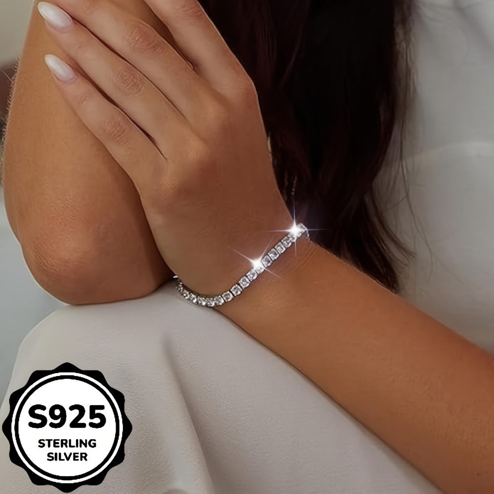 925 Silver Tennis Bracelet with Rhinestones Classic & Sporty Style