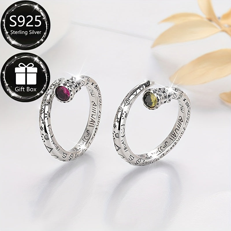 This 925 sterling silver ring features a vintage design with synthetic gemstone inlays and intricate engravings. Perfect for daily wear or as a gift for Valentine's, Mother's Day, and more.