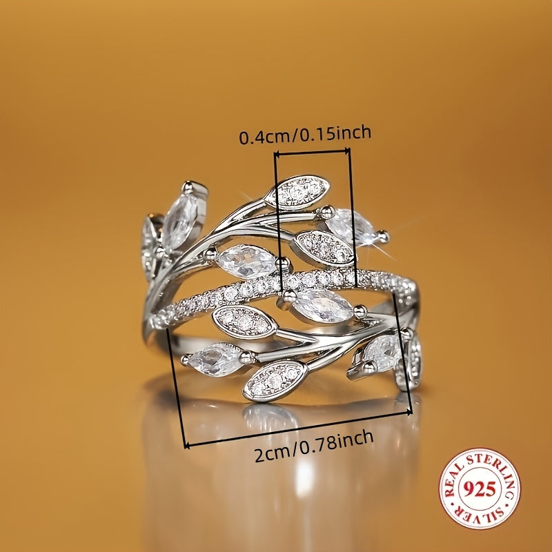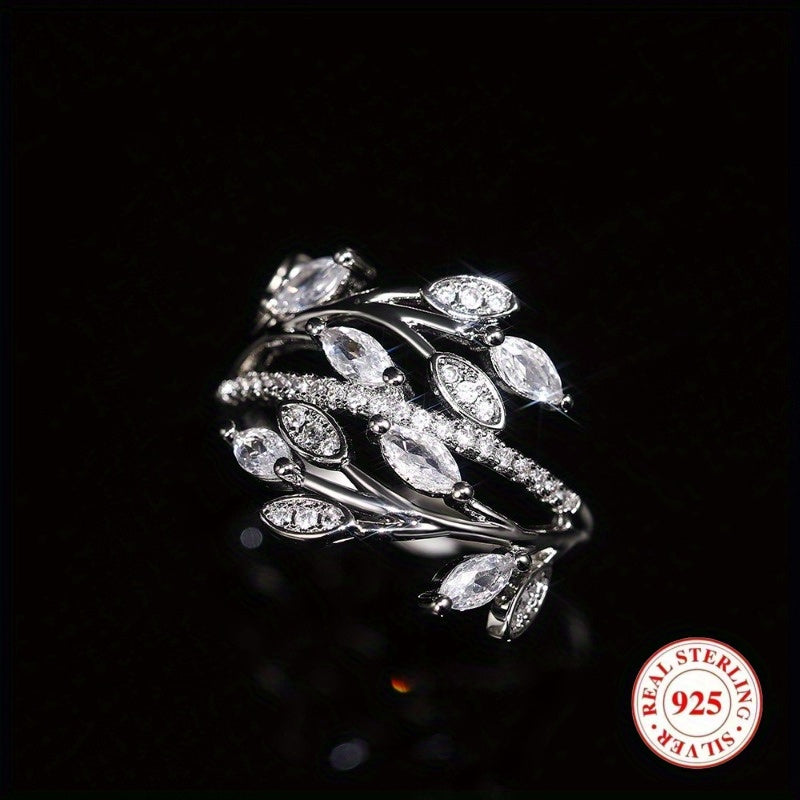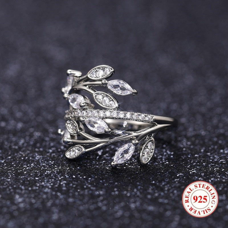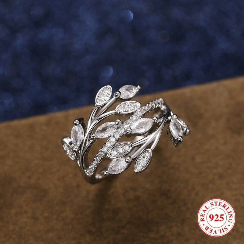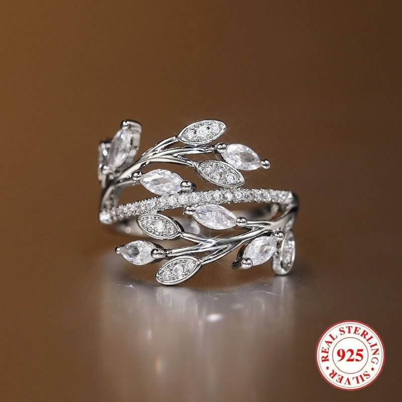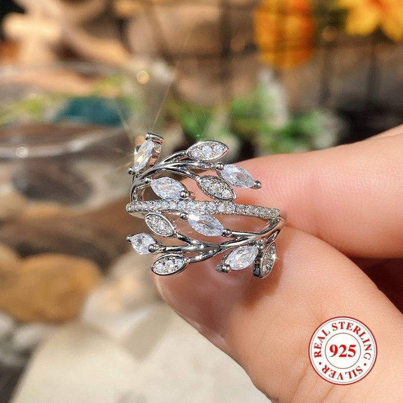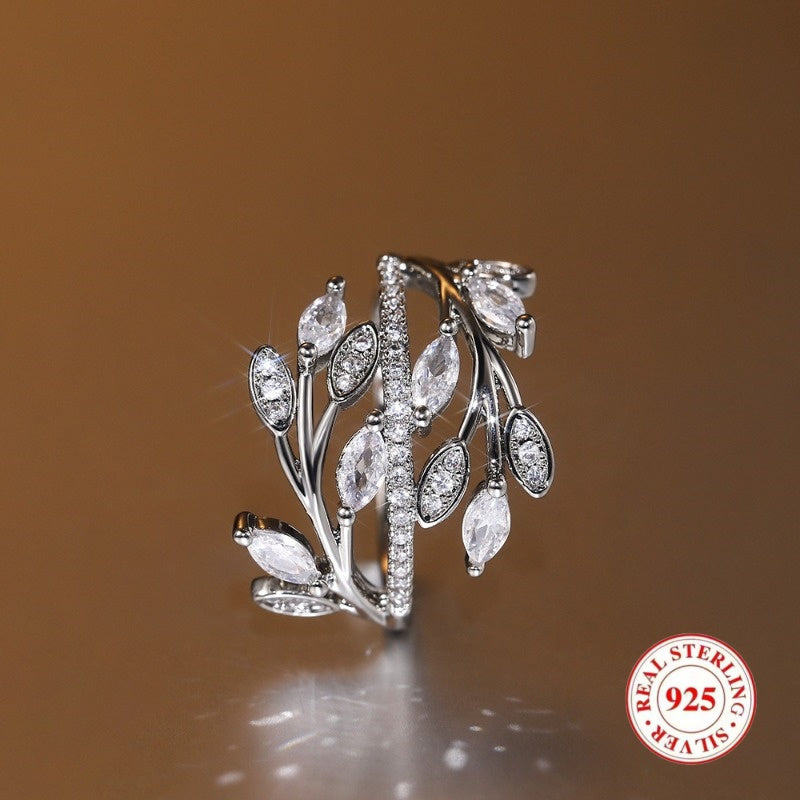 This unique ring features an interlaced leaf design with a creative personality. Made of 925 pure silver, it showcases a flower vine and an octagonal flower for a stylish look. An elegant piece of jewelry.