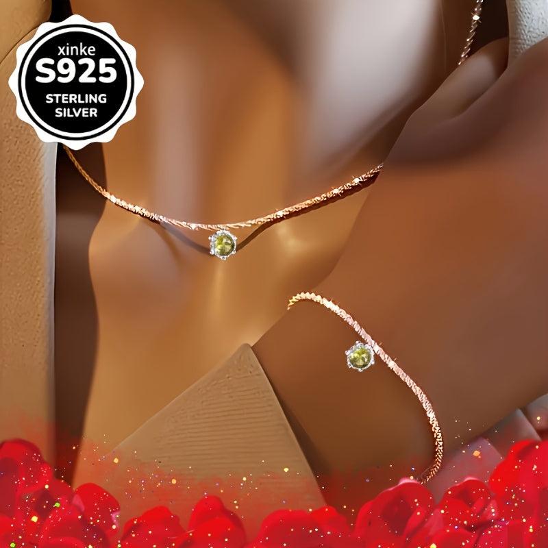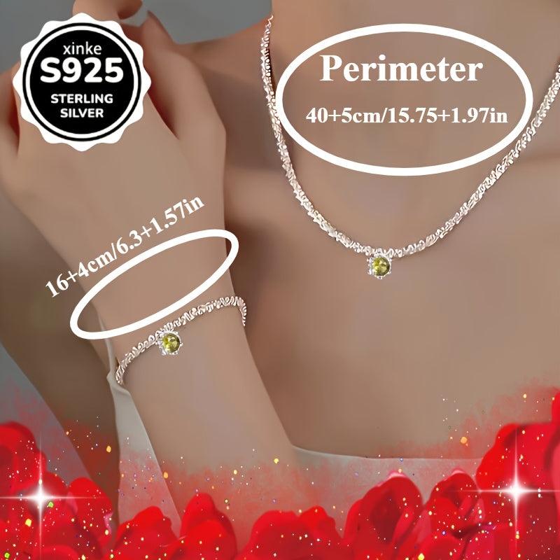 Elegant set of necklace and bracelet made with 925 sterling silver and yellow synthetic zirconia, perfect for daily wear, parties, gatherings, and beach outfits.