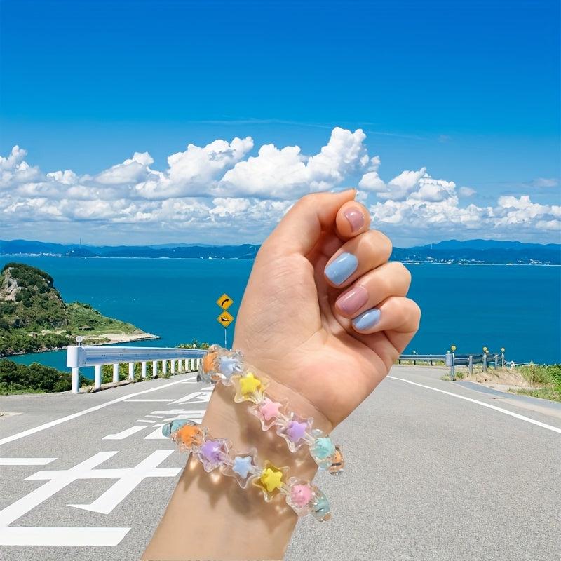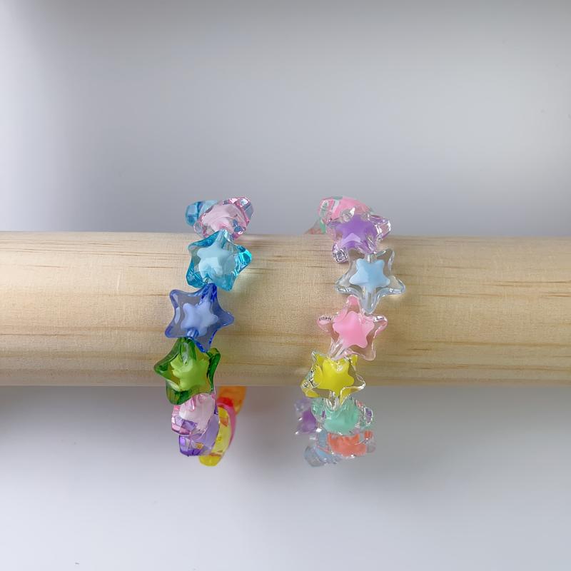 This charming bracelet features acrylic star charm and colorful beads. It is light and perfect for all seasons, adding a touch of fun to your casual outfits.