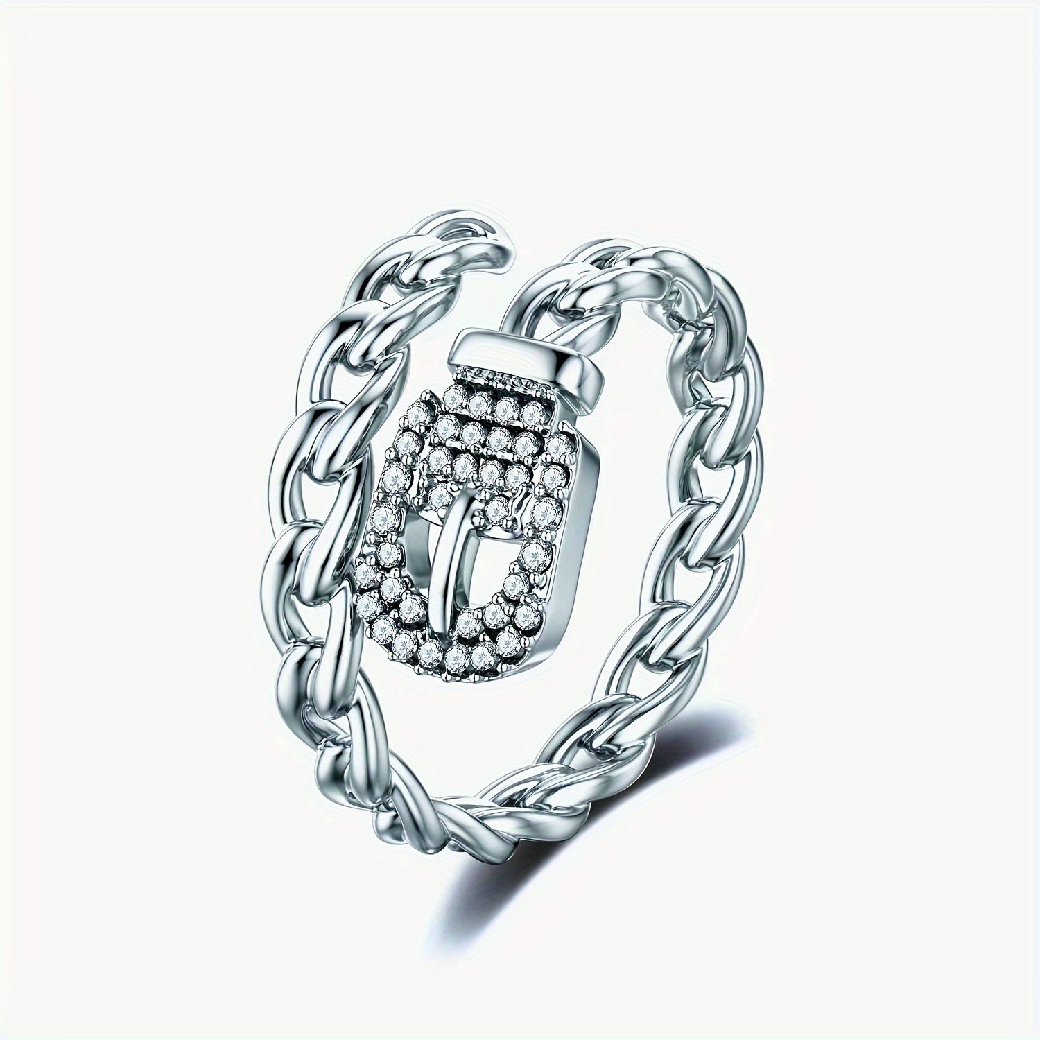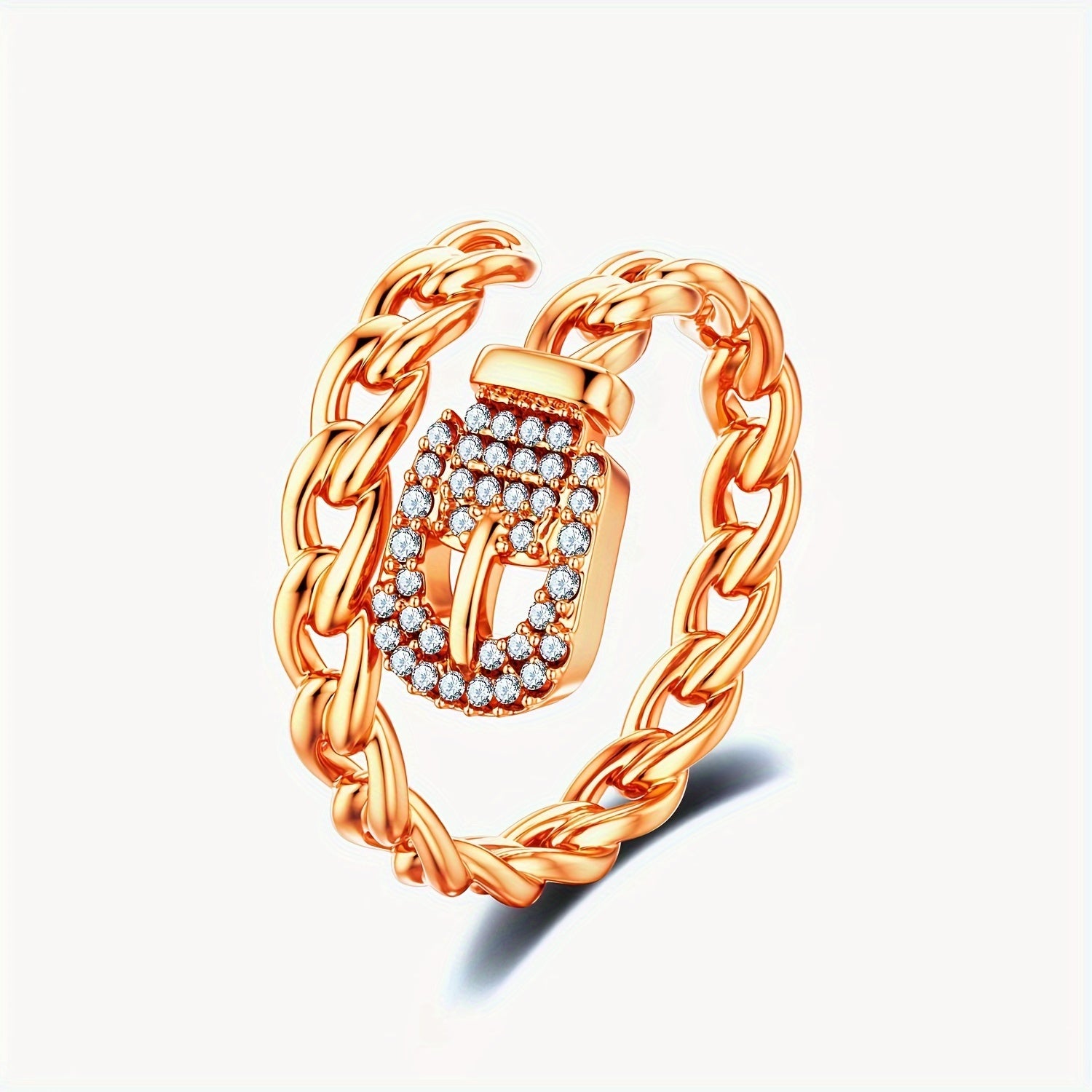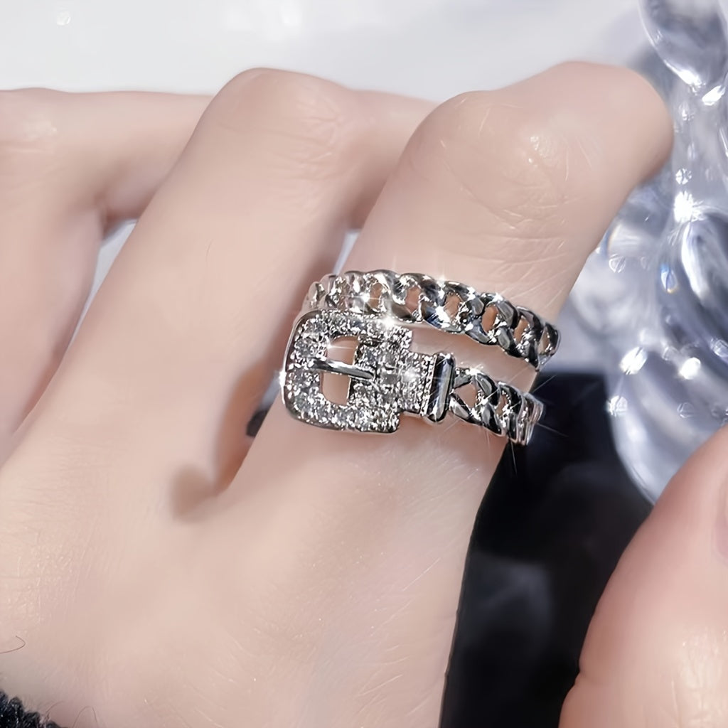 Adjustable Belt Buckle Ring with CZ Copper Oxidized