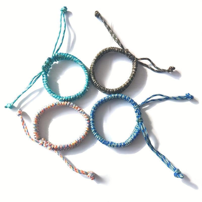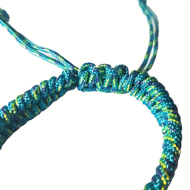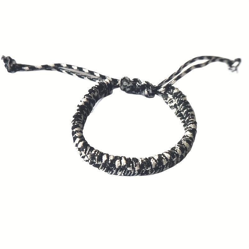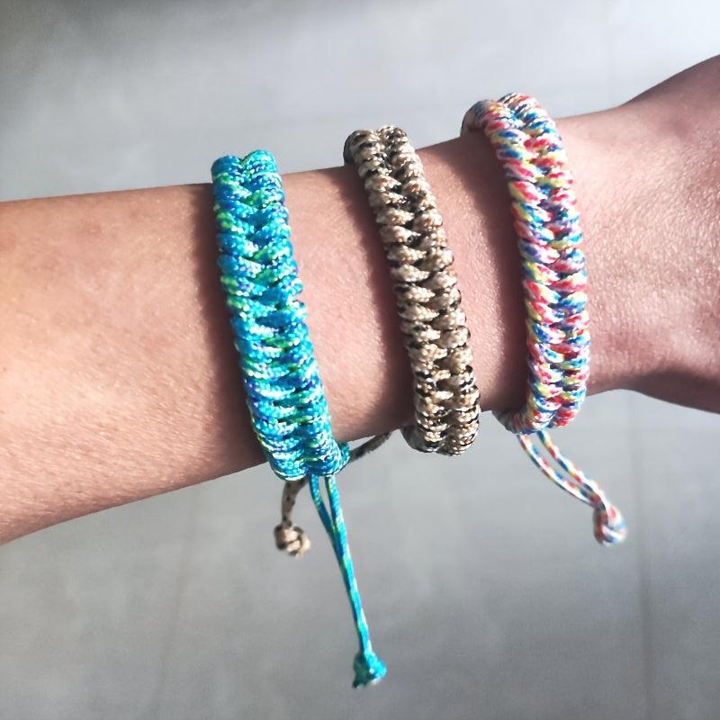 Embrace vacation vibes with this colorful striped nylon rope bracelet. Ideal for camping, parties, and outdoor adventures.