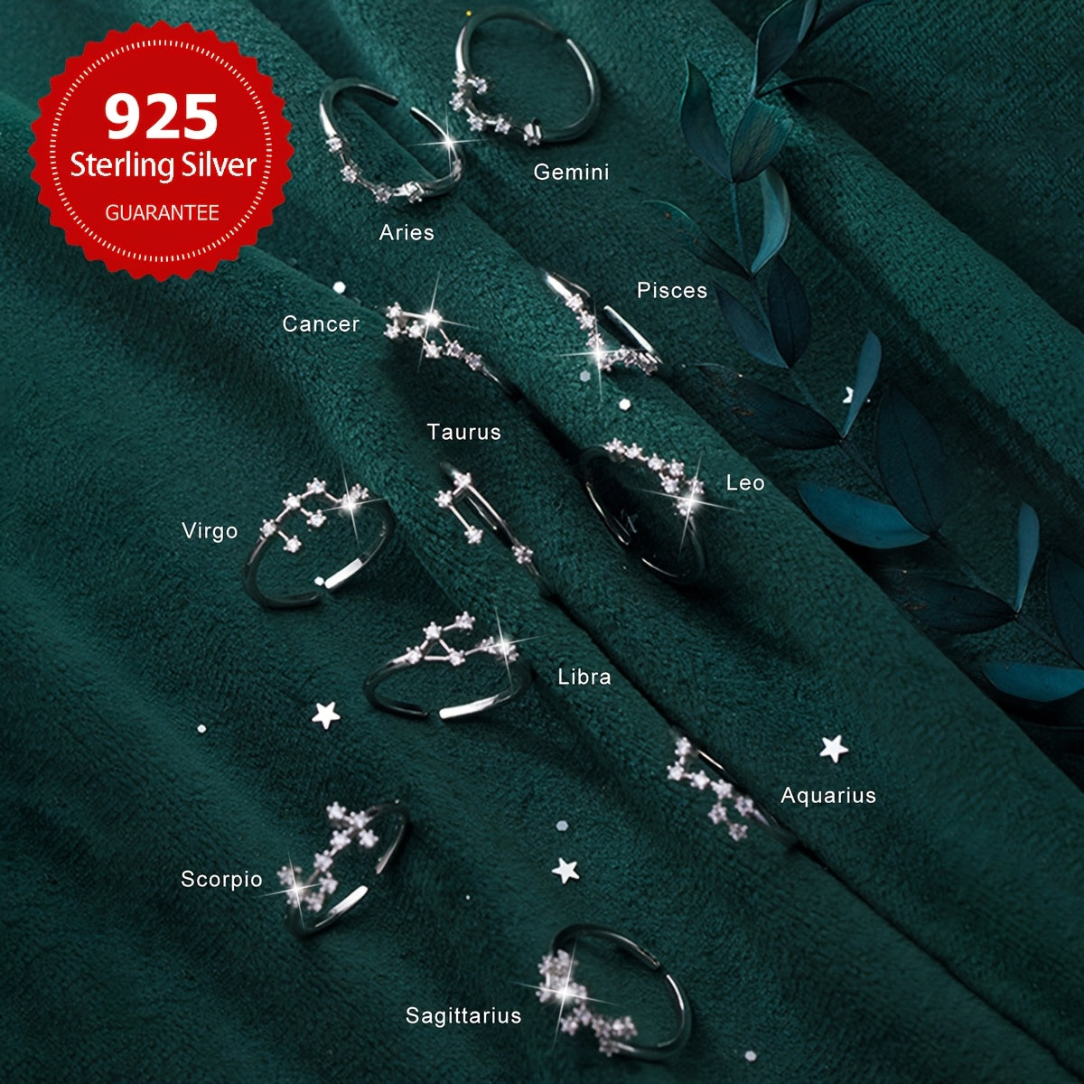 Adjustable Zodiac Sign Open Ring Women's S925 Sterling Silver Jewelry