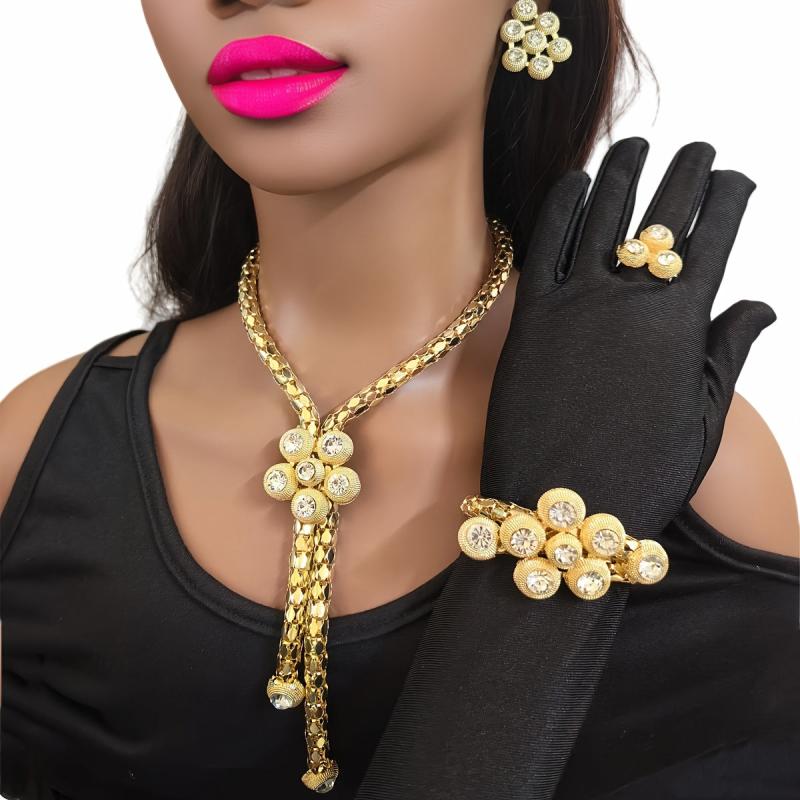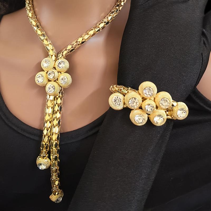 This stunning jewelry set features intricate rhinestone mosaic designs, perfect for daily wear or special occasions like celebrating Ramadan. It makes a thoughtful gift.