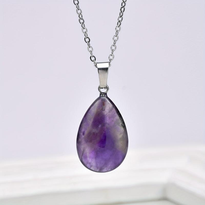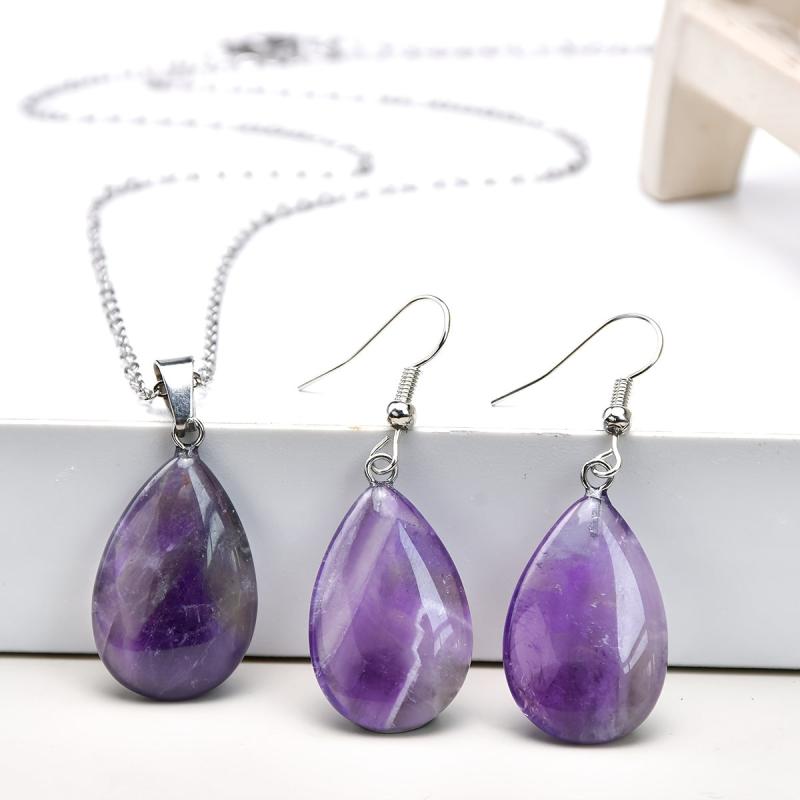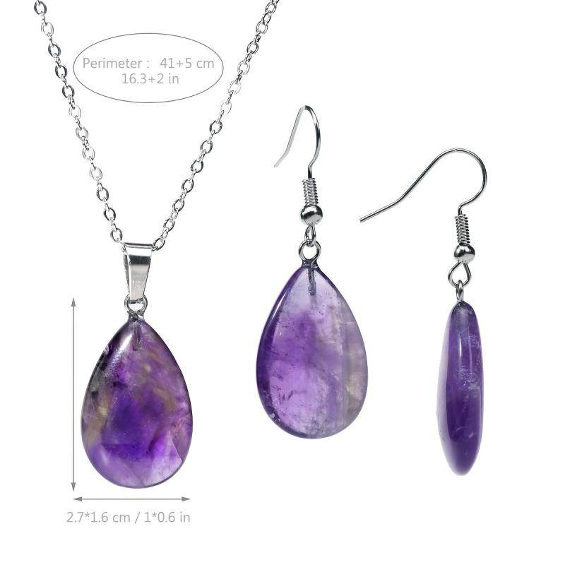 Elevate your look with this charming Amethyst jewelry set featuring a teardrop pendant necklace and earrings. Perfect for everyday gatherings with friends or to celebrate Valentine's Day.
