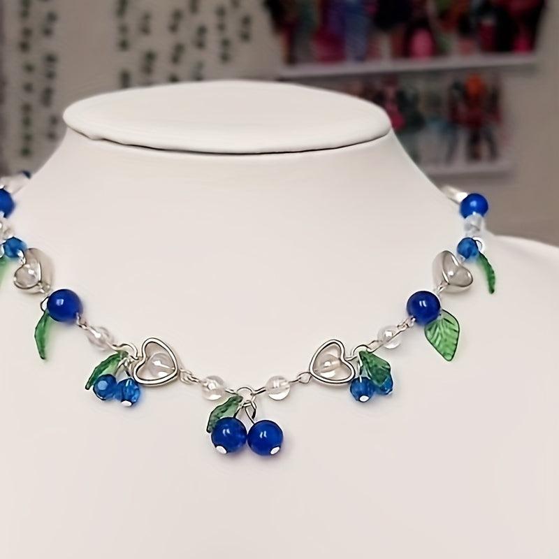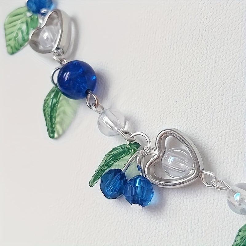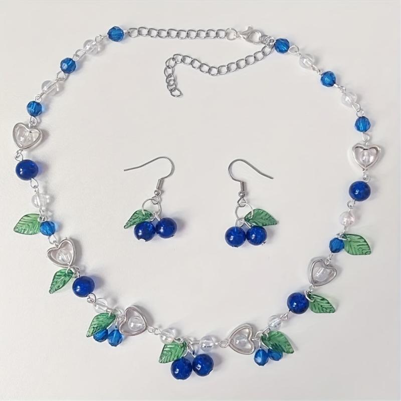 Complete your summer party look with this dangle earrings and necklace set featuring berry beads. Perfect for a vacation or a bohemian style outfit.