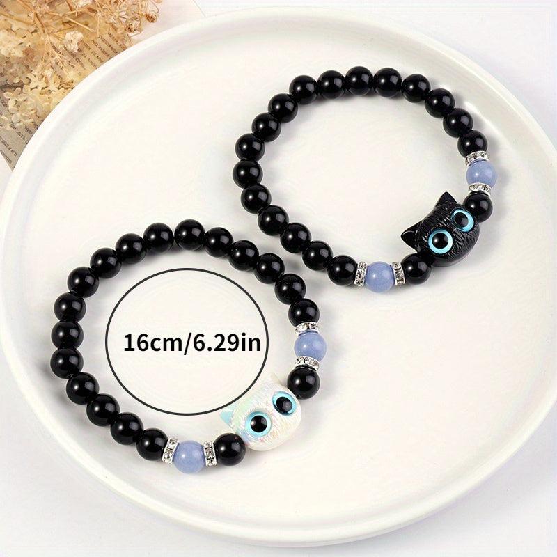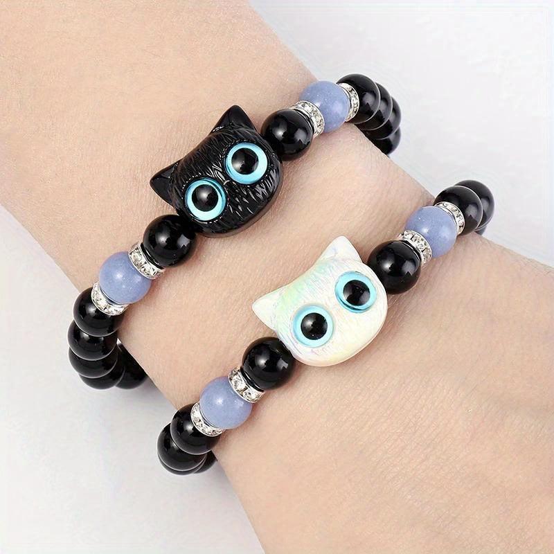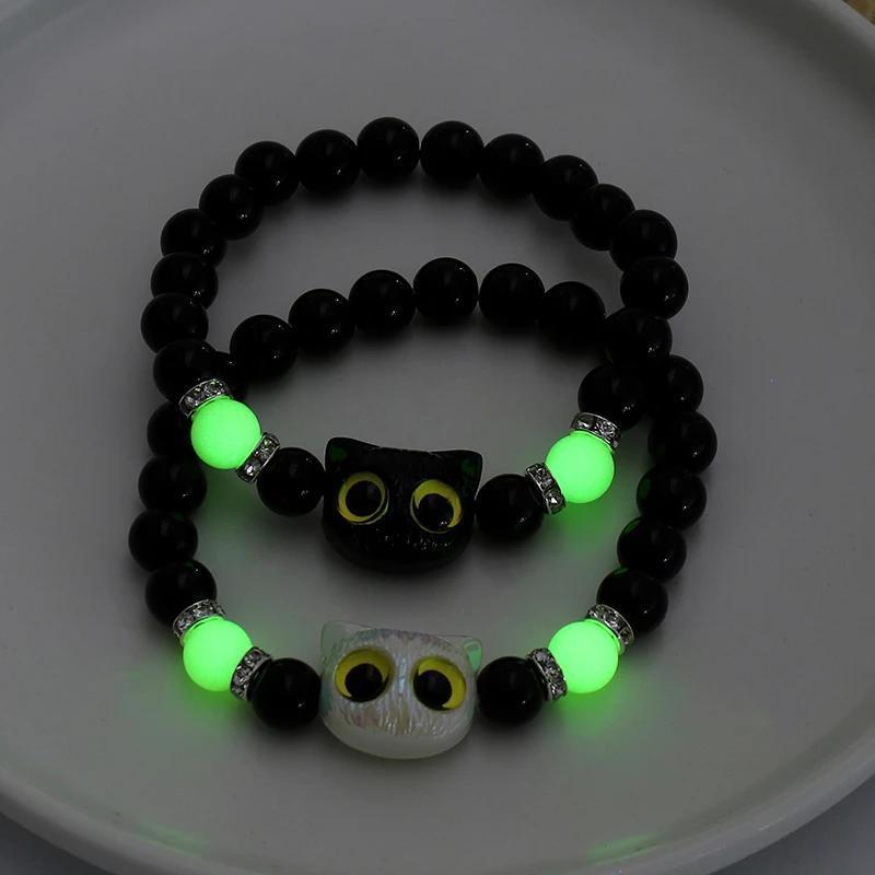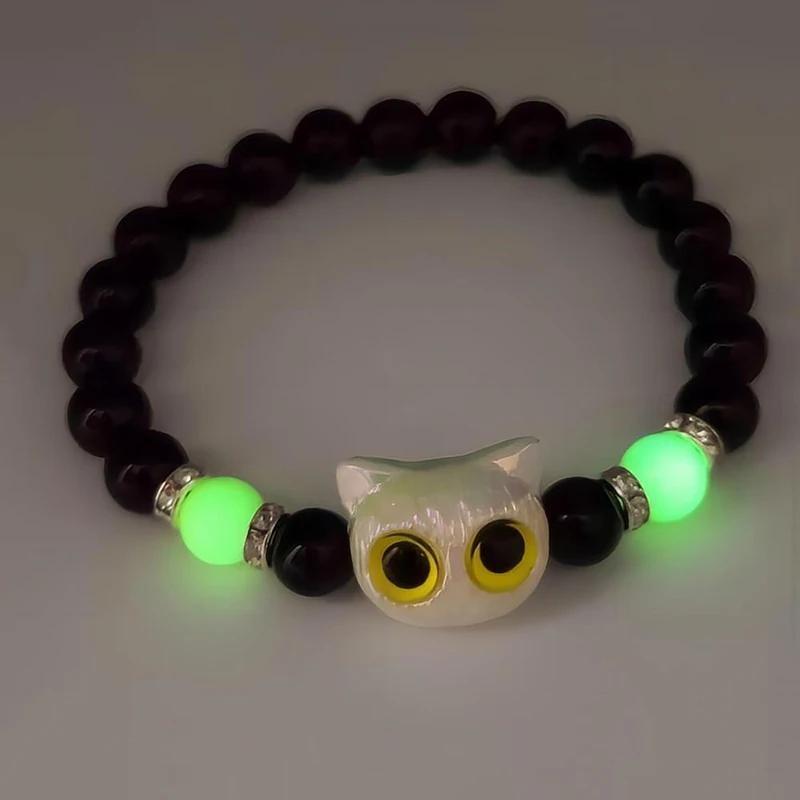 This bracelet features a big eye cat pendant and luminous glass beads, adding a touch of vintage style to your look. Perfect gift for Valentine's Day or friendship.