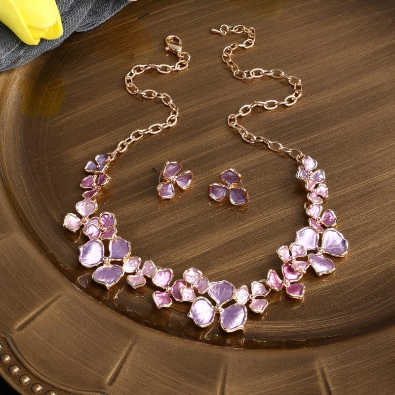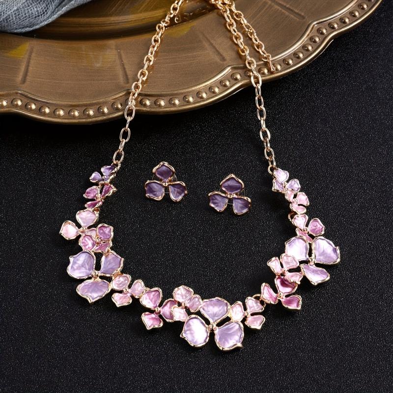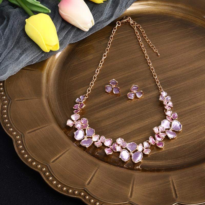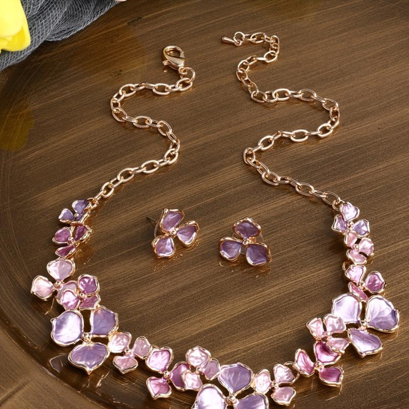 Elevate your summer style with this zinc alloy floral necklace and earring set. Perfect for pairing with hot pants, short skirts, or any occasion.