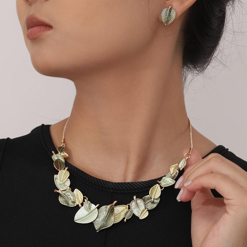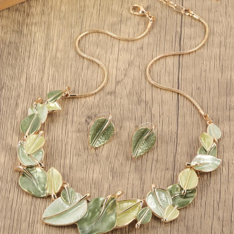 Add a touch of vacation style with this set featuring zinc alloy green enamel leaf design. Perfect for travel or daily wear.