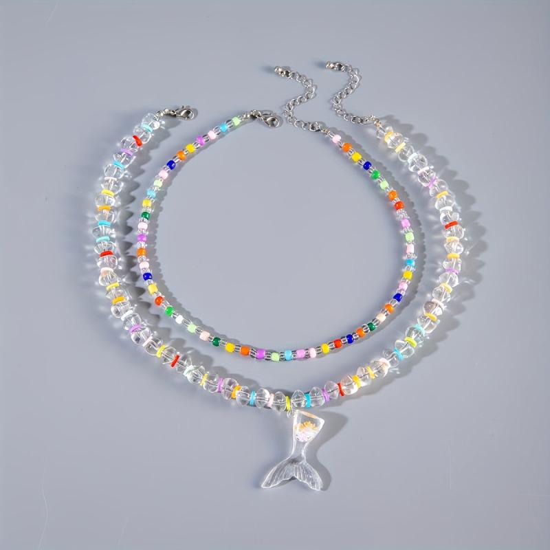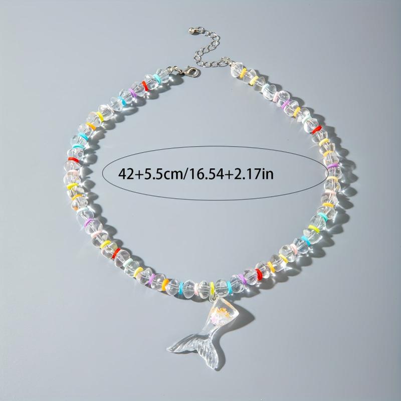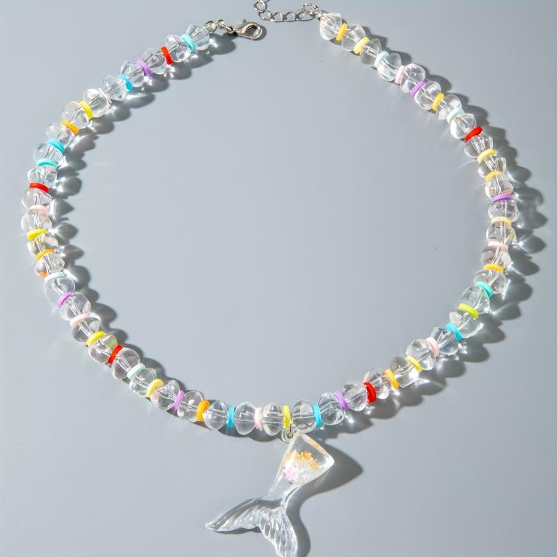 Get in touch with ocean vibes with this bohemian style pendant set. The colorful beads and resin fish tail design make it ideal for gifting friends or for casual wear.
