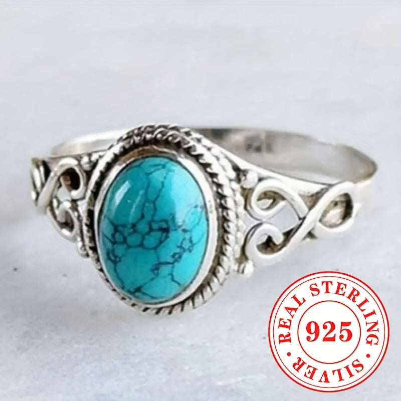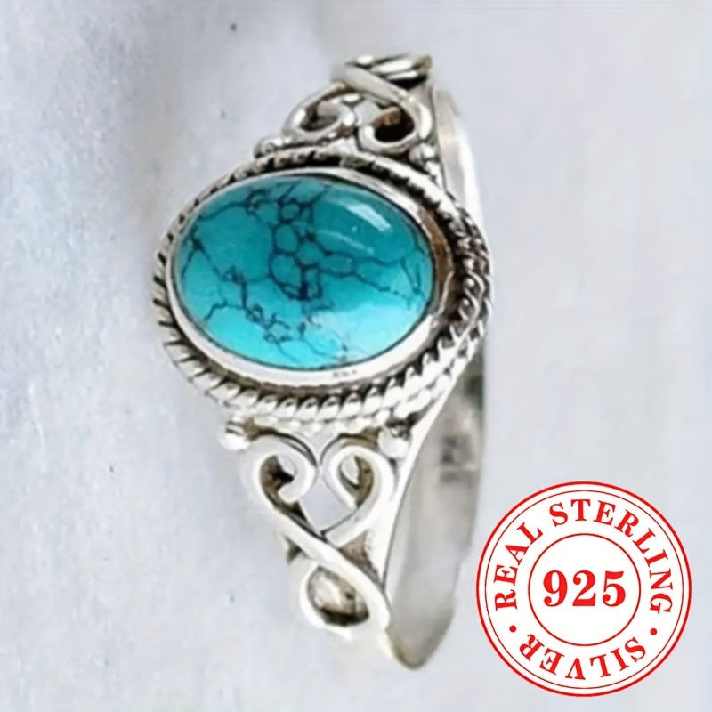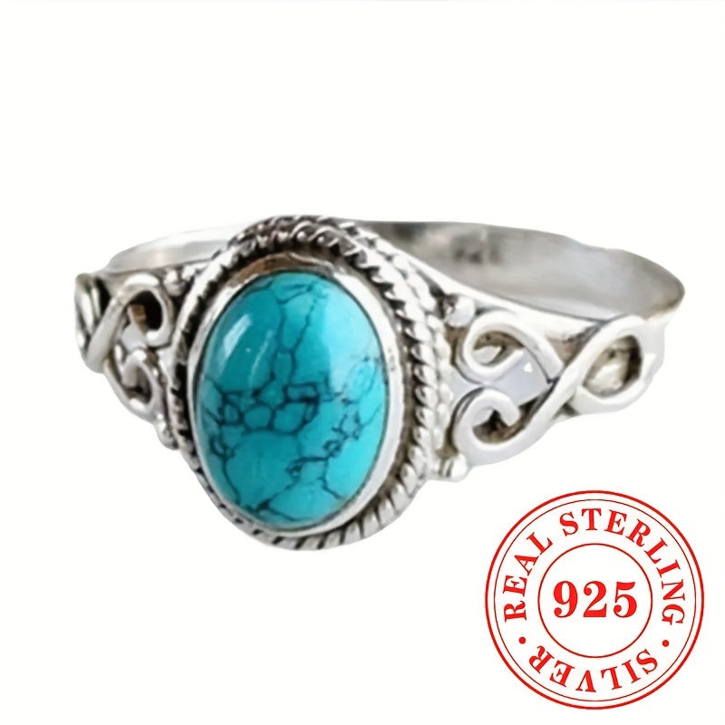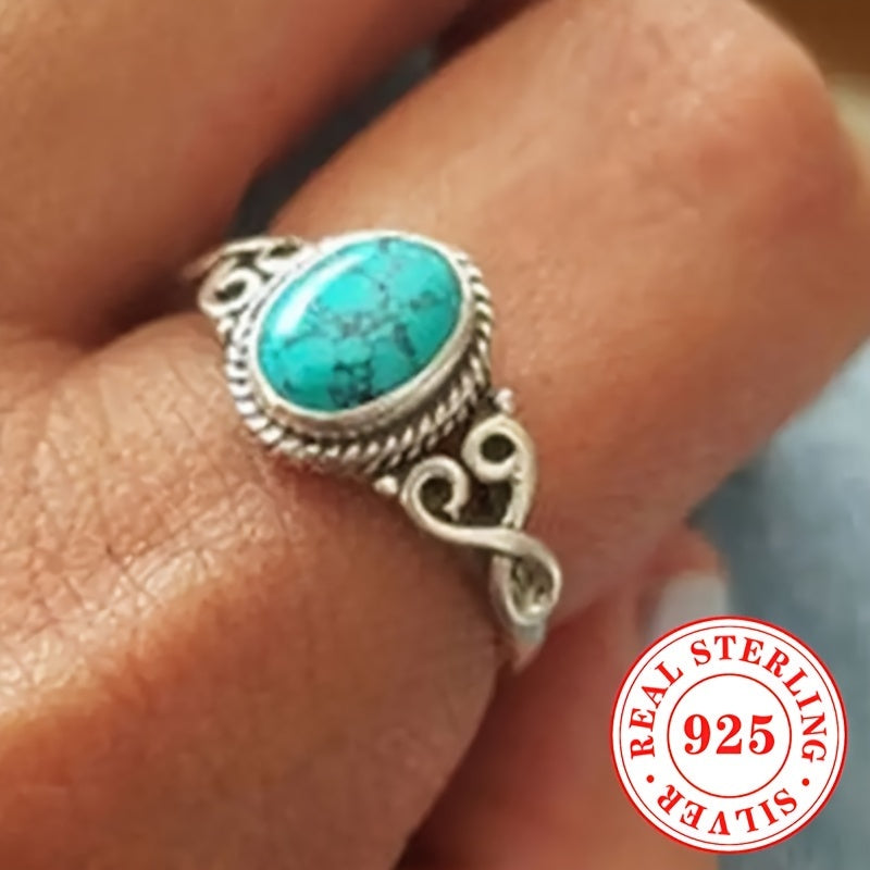 Elegant and unique ring crafted from 925 sterling silver with artificial gemstones. This high-end bohemian vintage piece weighs 2.8 grams.