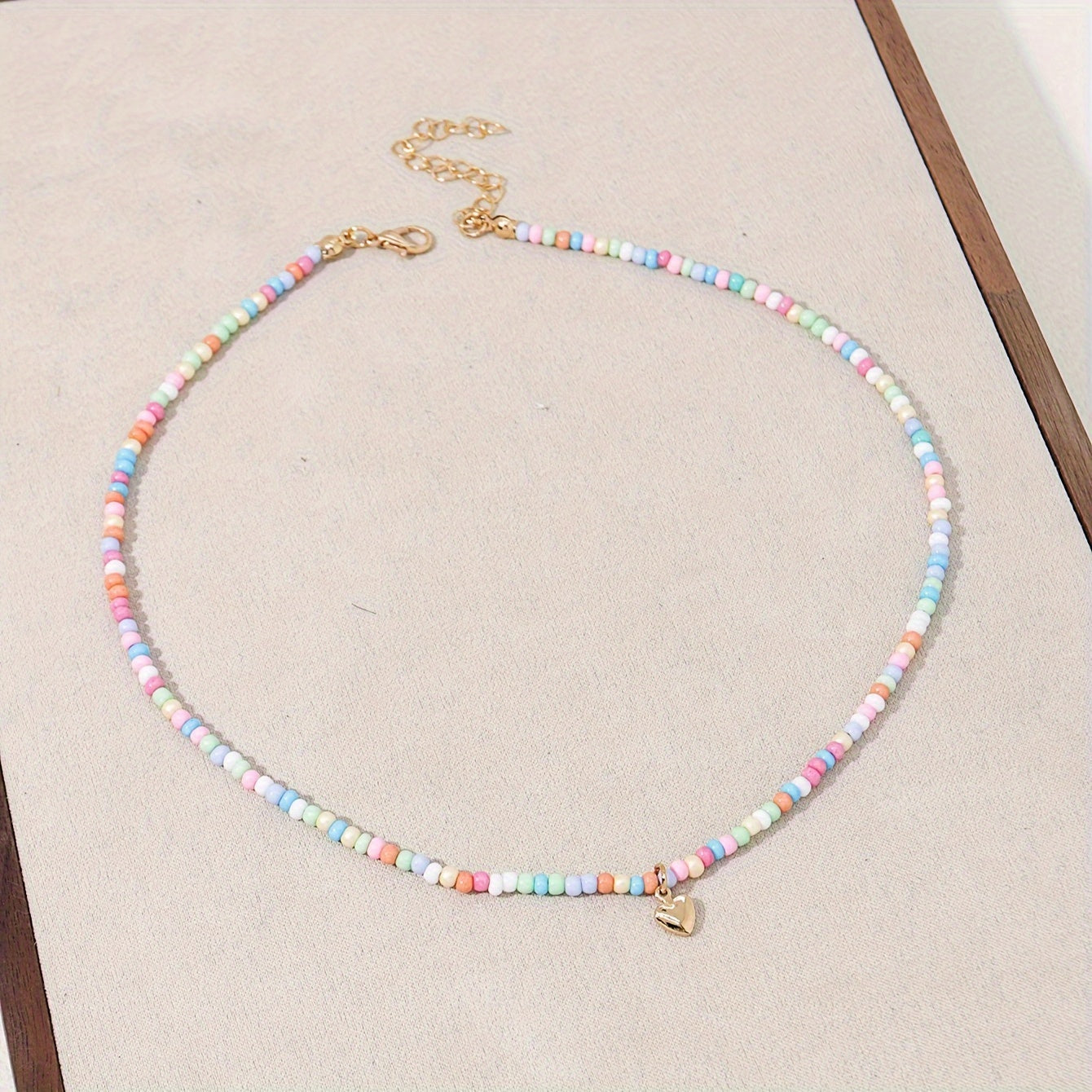 Boho Beaded Pendant Necklace with Heart Charm Handcrafted