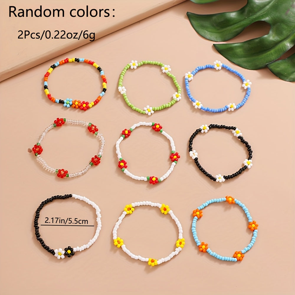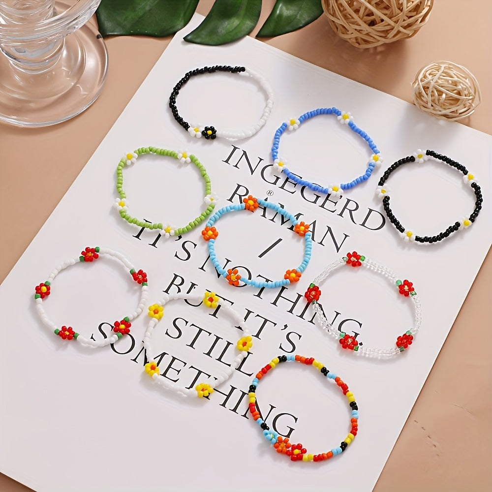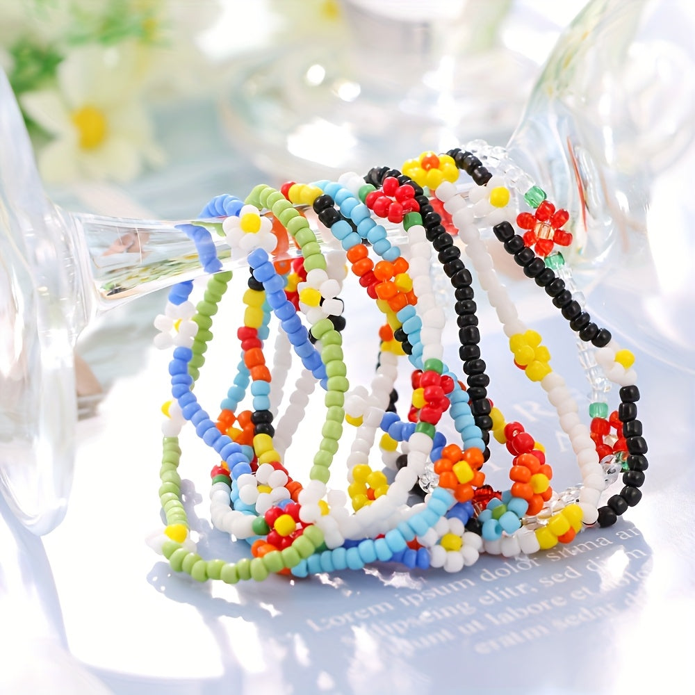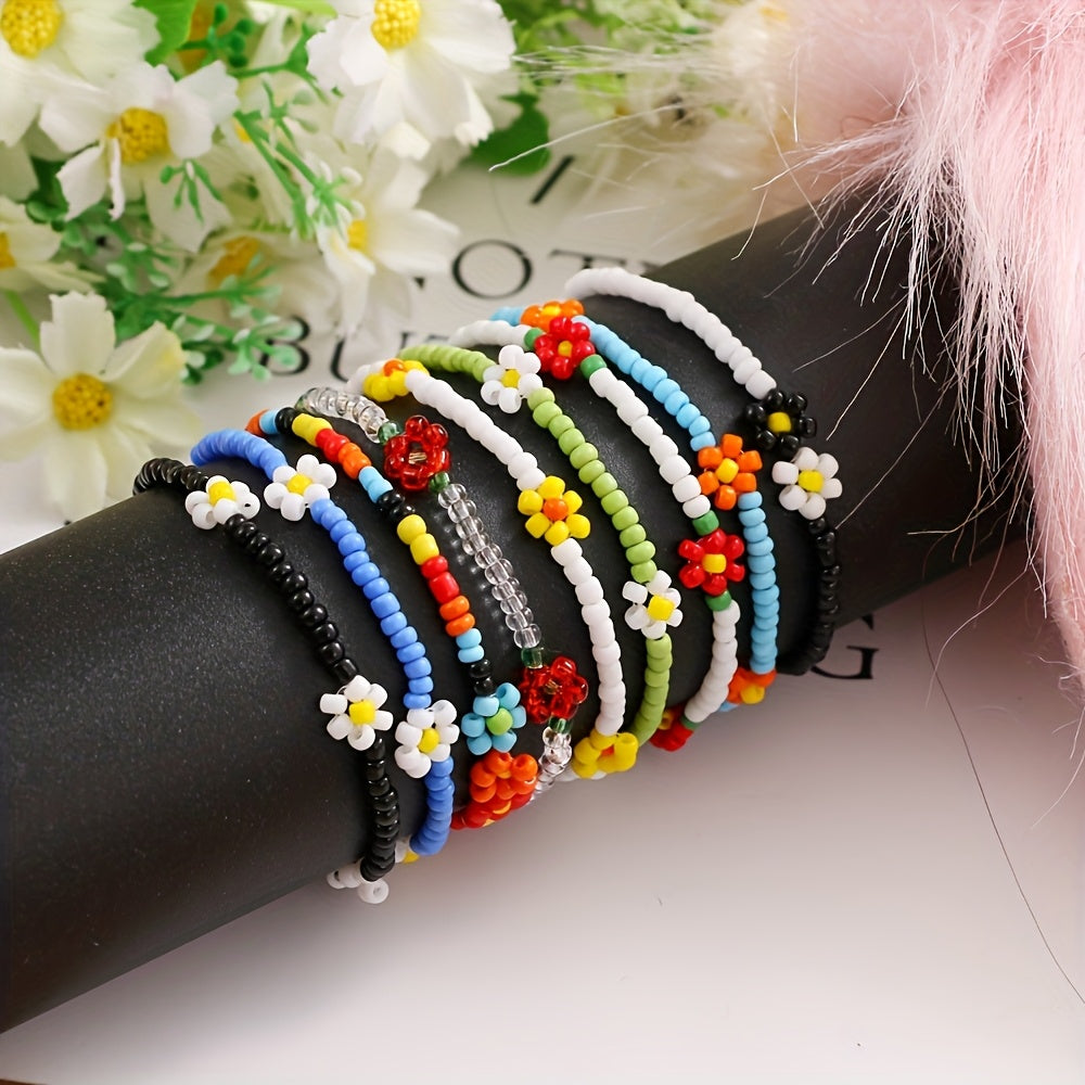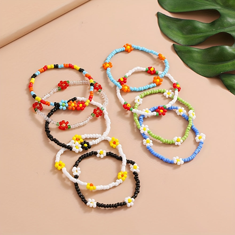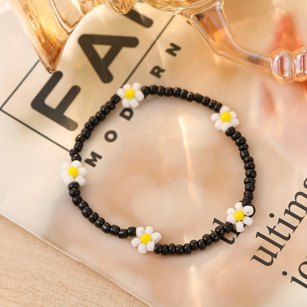 Boho Daisy Beaded Bracelet Set March Birthstone for Casual Wear