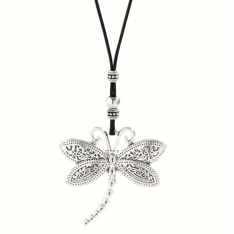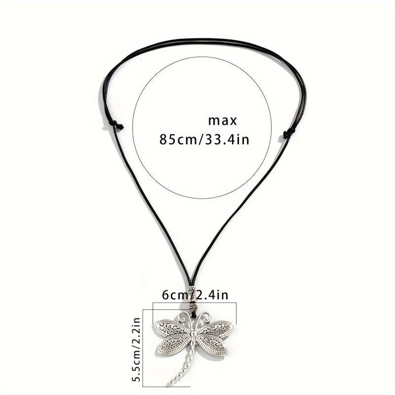This adjustable retro classic wax rope necklace features a dragonfly pendant, exuding a boho ethnic style. Perfect as a neck jewelry gift for someone special.