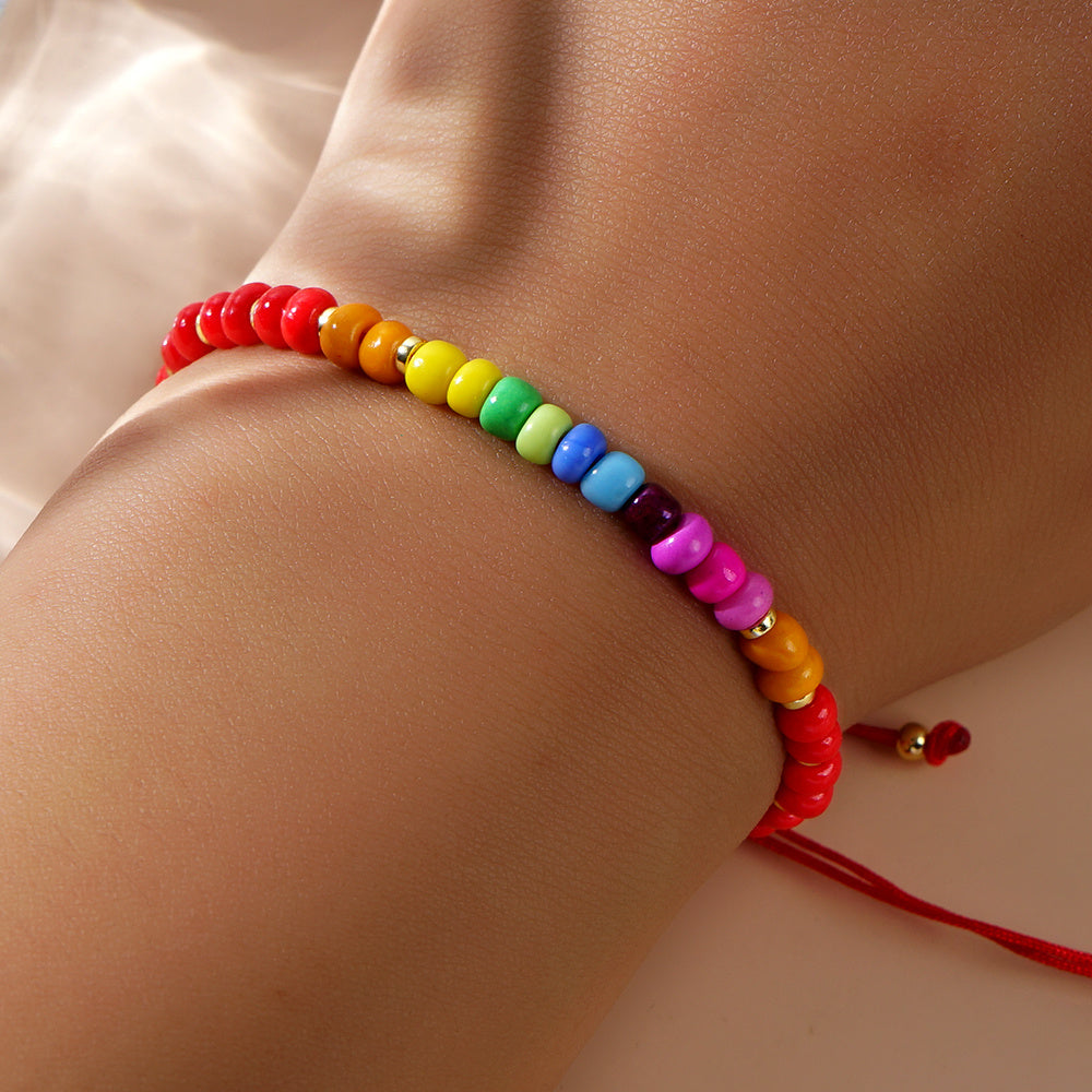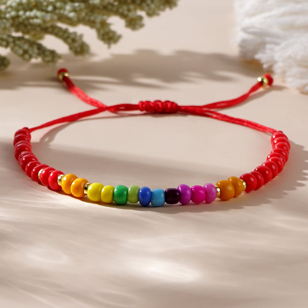 This colorful bracelet is a must-have for vacations and casual outings. Add a pop of boho style to your look with these vibrant beads.