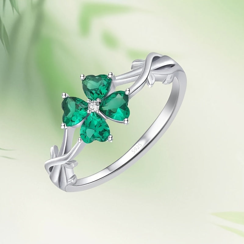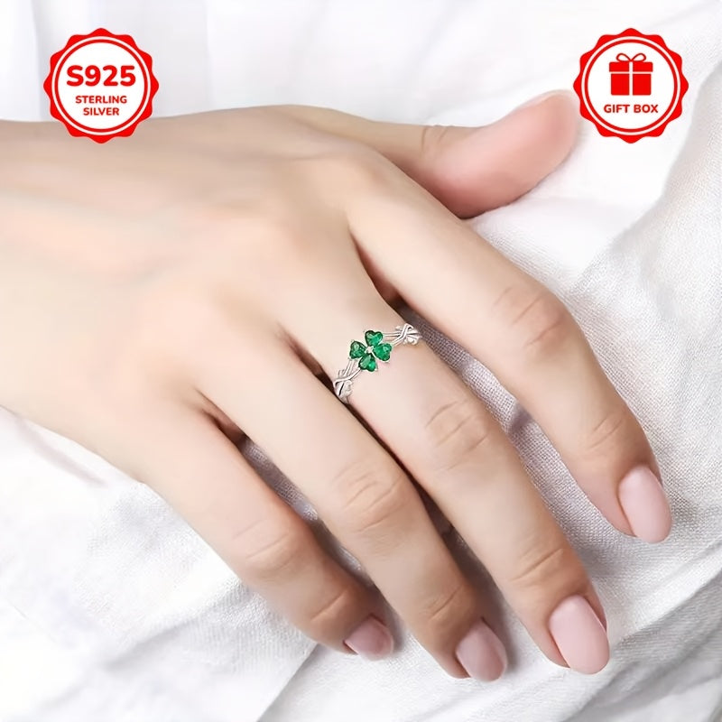This bohemian-inspired ring features a love four-leaf clover design with synthetic zirconia. Perfect for daily wear, travel, and gift-giving.