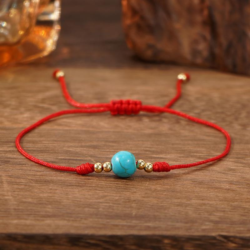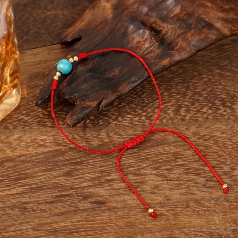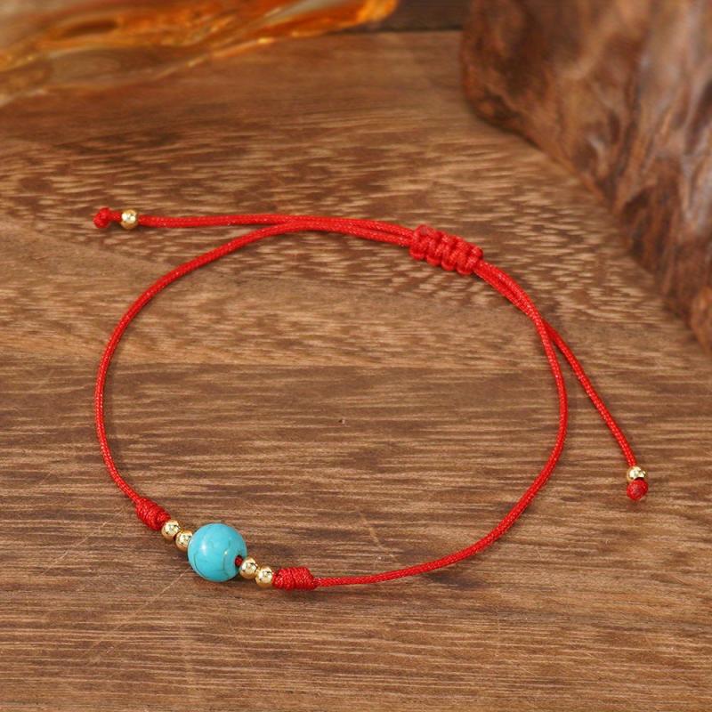 Boho Style Semi-Synthetic Gemstone Red Cord Bracelet