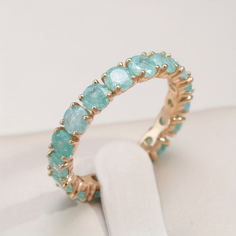 Boho Turquoise Zirconia Circle Ring Golden Tone Promise Band
