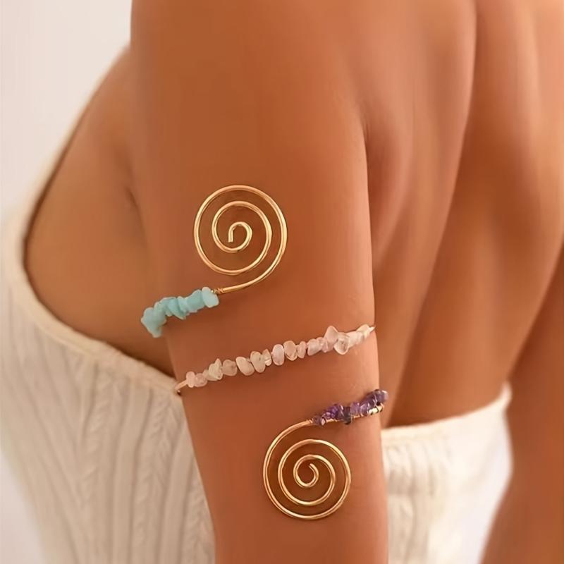 This bohemian vintage-inspired body chain is crafted with 18K golden plated iron and features natural stone beads. It is versatile for daily wear or party occasions.