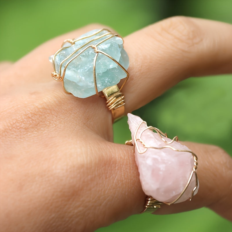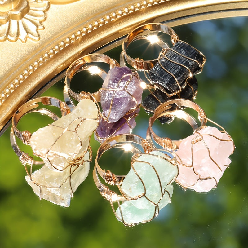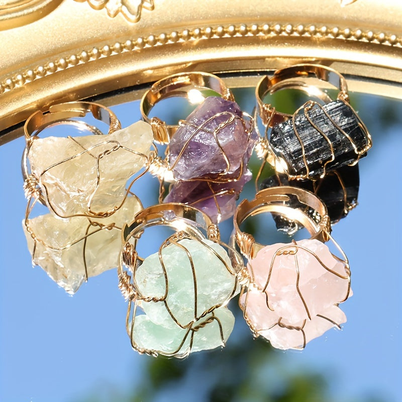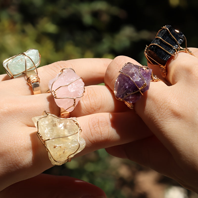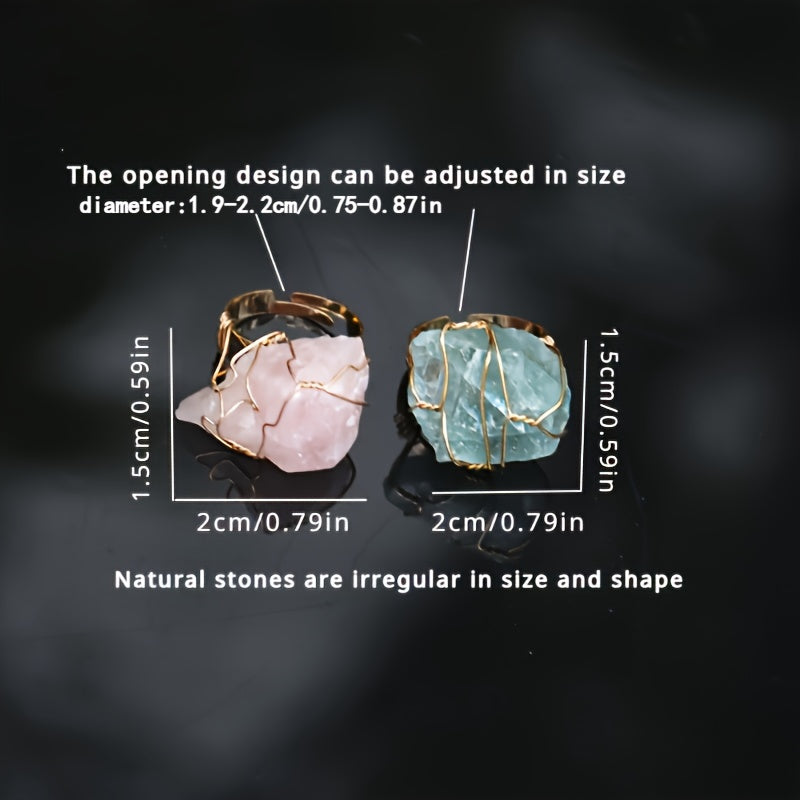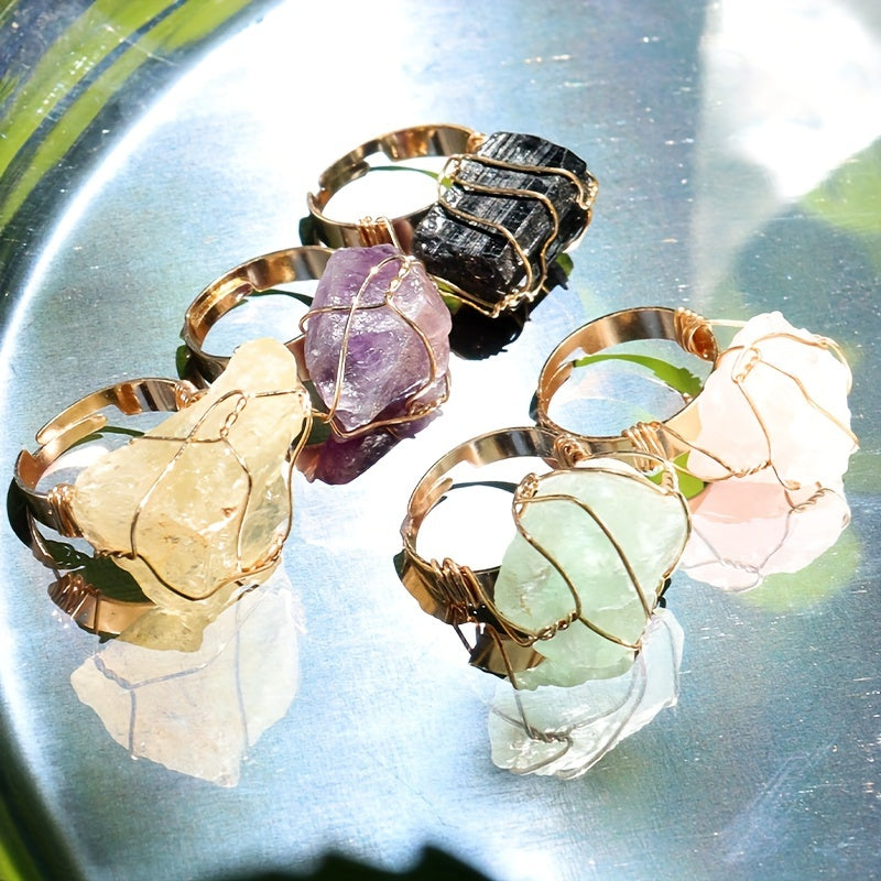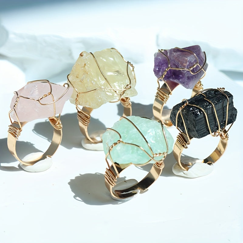 Elevate your look with this 5-piece set of bohemian vintage style rings featuring natural stones and copper. Adjustable open design, hypoallergenic, and comfortable to wear, perfect for parties and vacations.