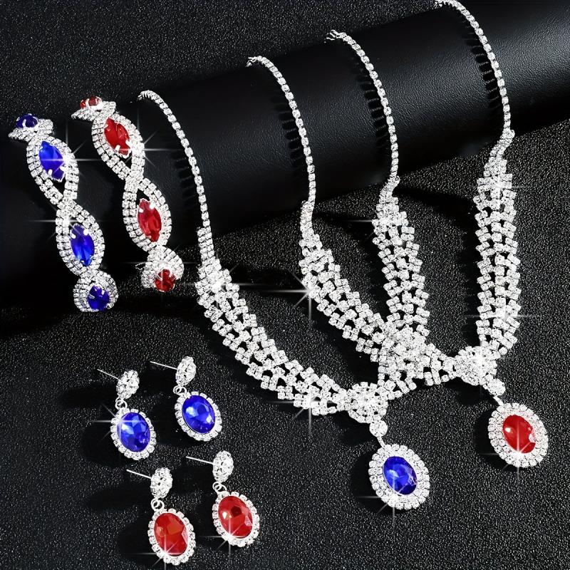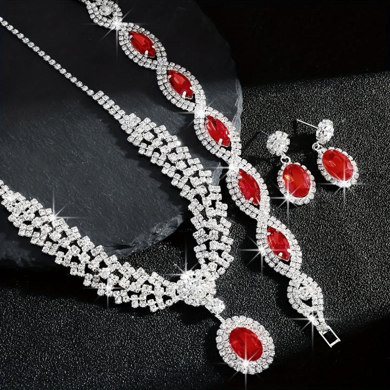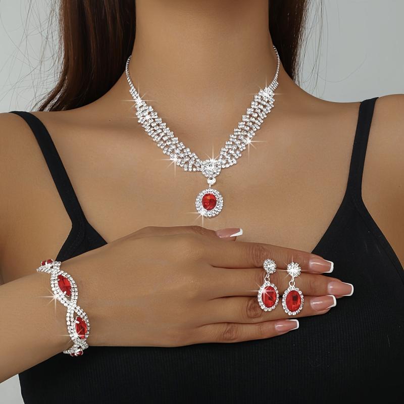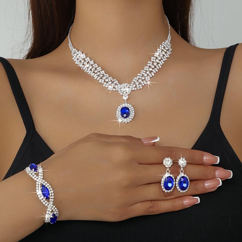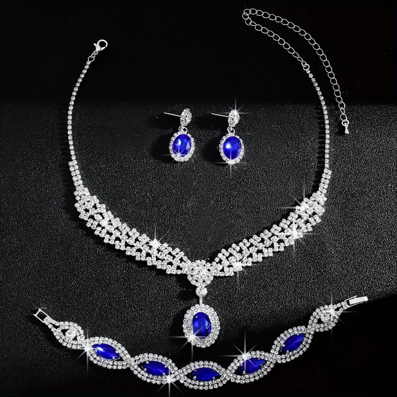 Complete your bridal look with this exquisite high-end artificial jewelry set that includes a necklace, bracelet, and earrings.