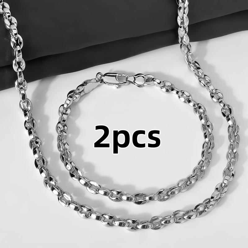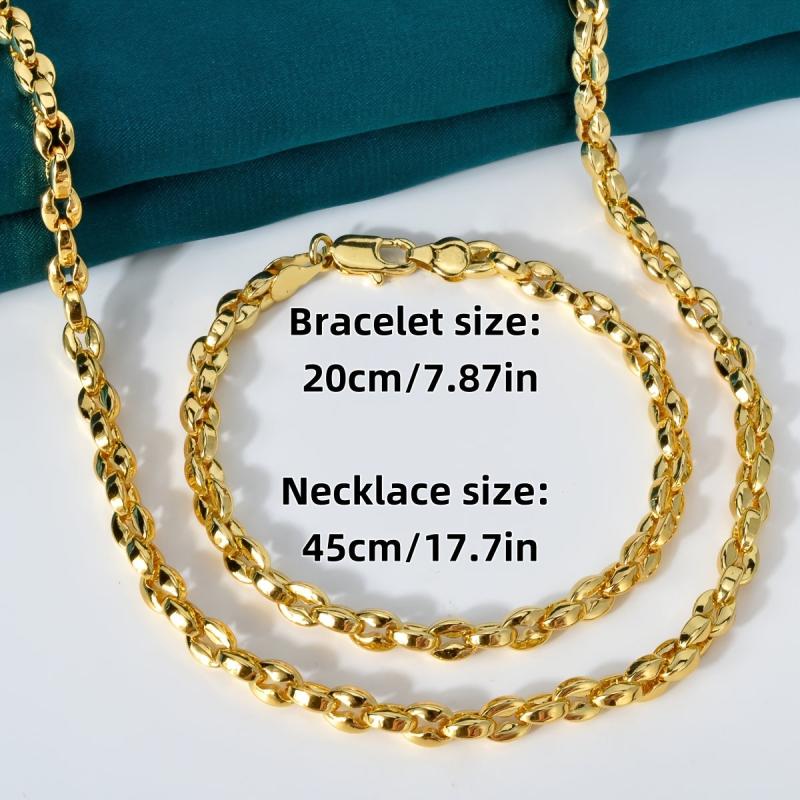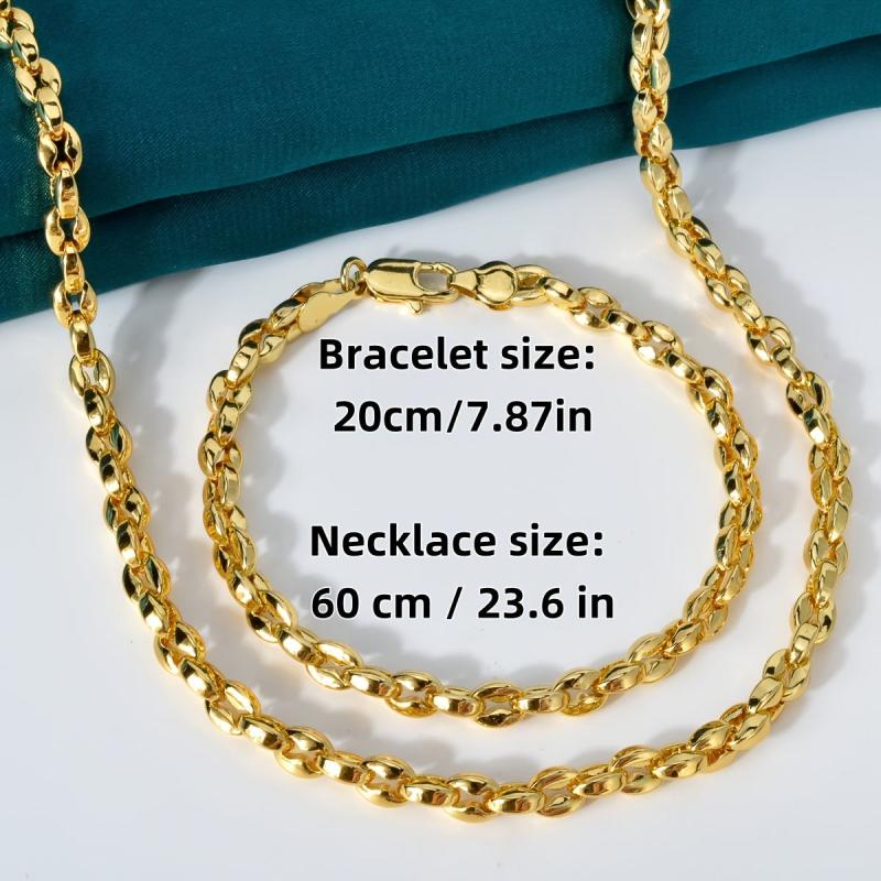 This 2-piece set features a coffee bean bead necklace and bracelet made of thick copper, perfect for adding a punk element to your style. Ideal for daily wear or special occasions.