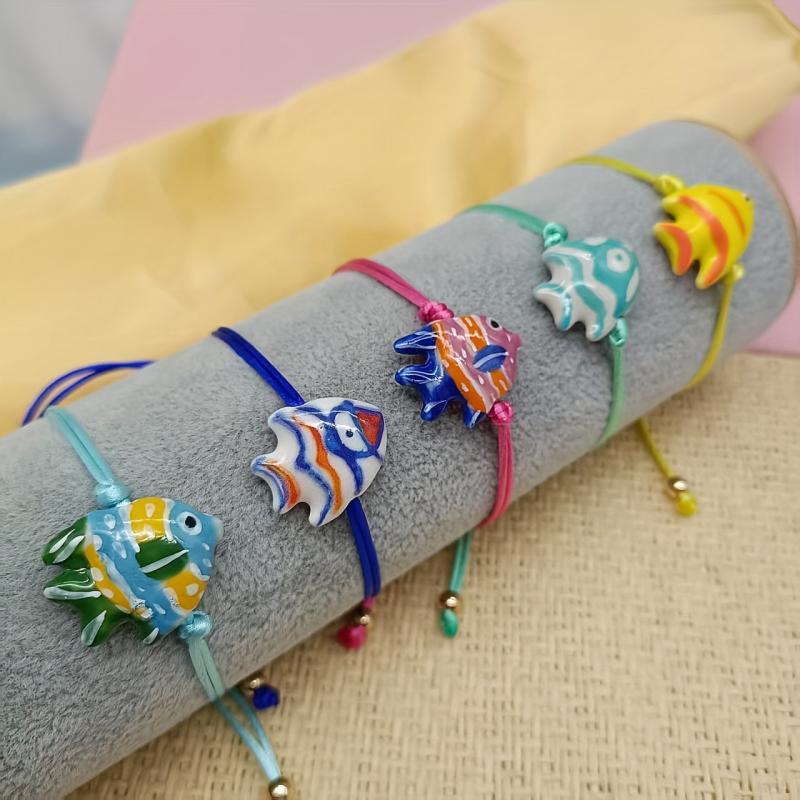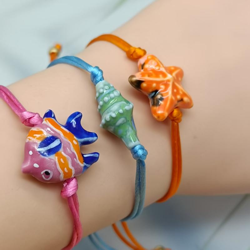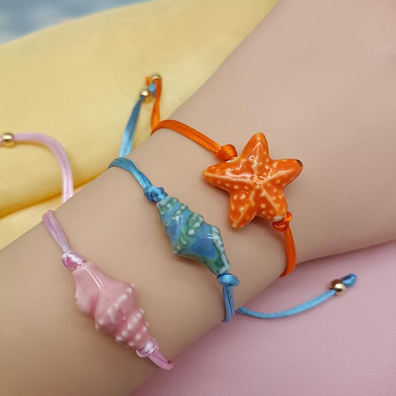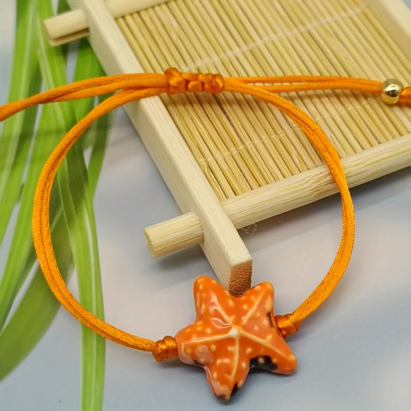 This charming wristband features a ceramic starfish charm and vibrant orange and pink beads. Perfect for everyday wear, this bracelet is a delightful accessory for all seasons.