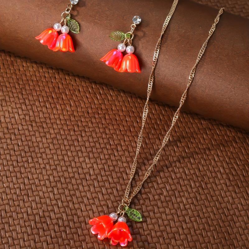 Enhance your style with this vintage boho acrylic jewelry set featuring a glass mosaic pendant necklace and matching earrings. Perfect for daily wear or special celebrations.