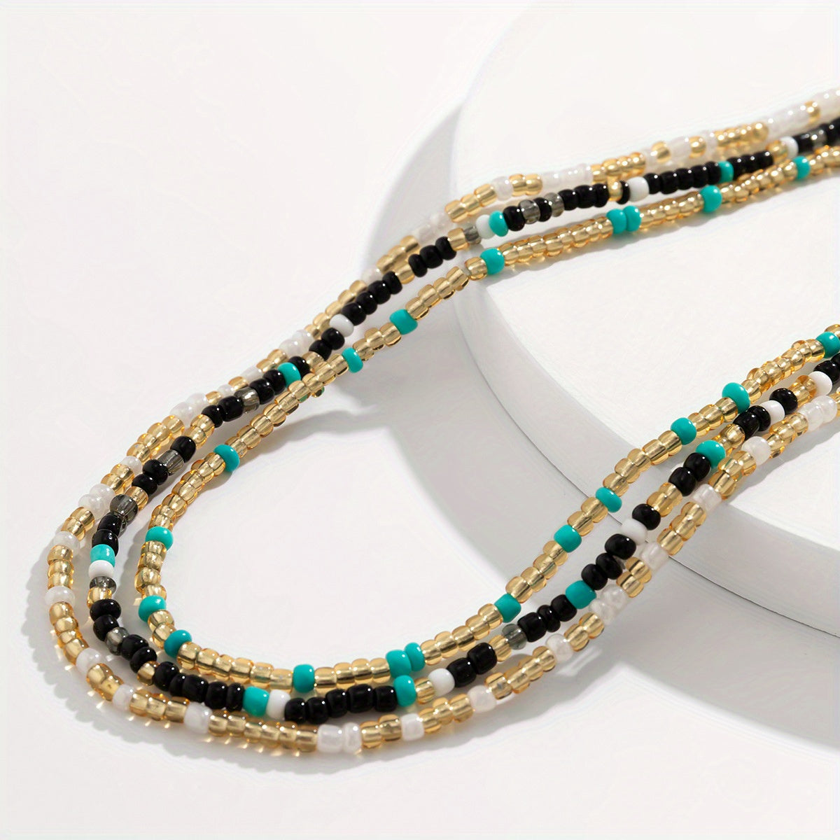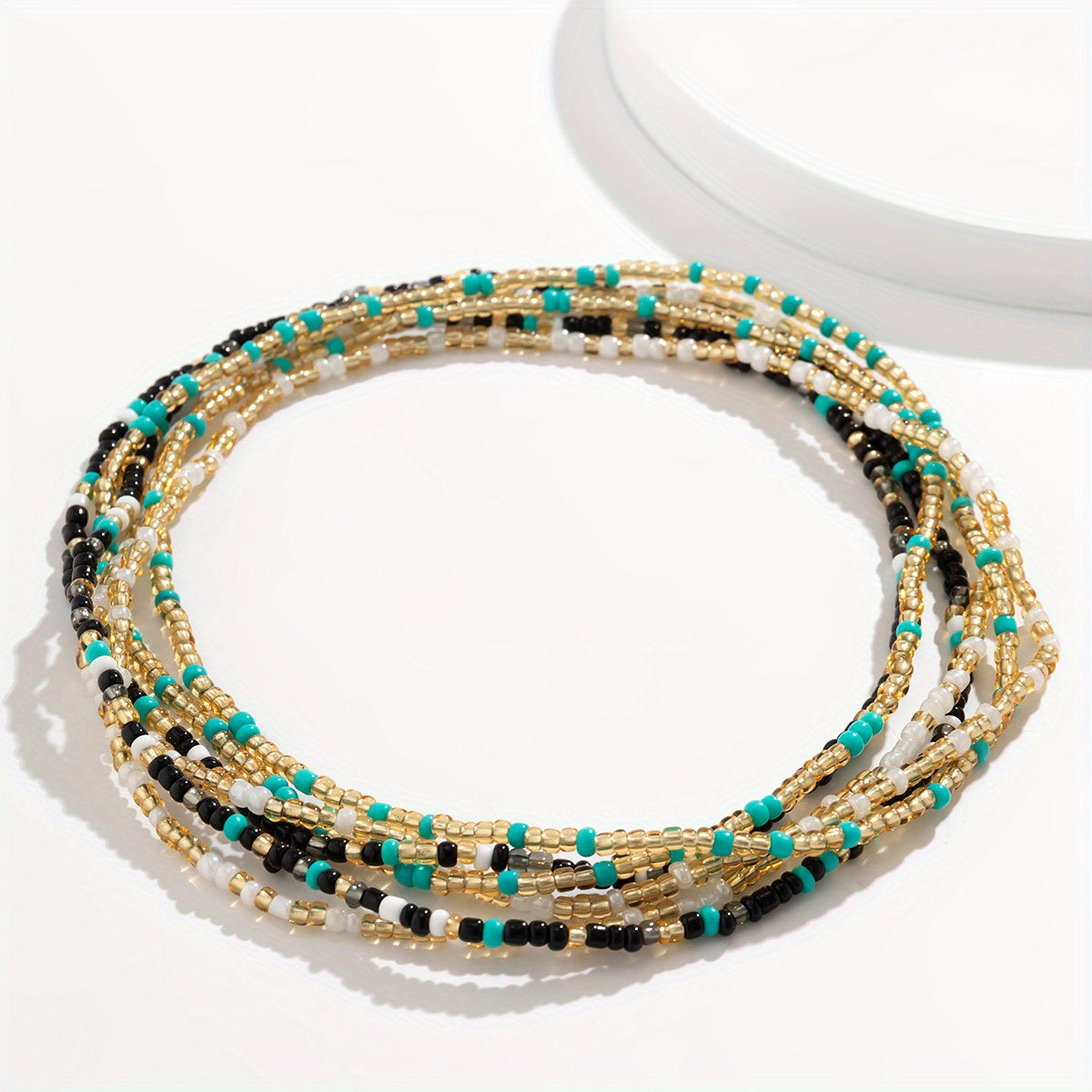 Add a pop of color to your beach look with this boho body chain featuring round glass beads. Perfect for a summer vacation or as a gift for your girlfriend.