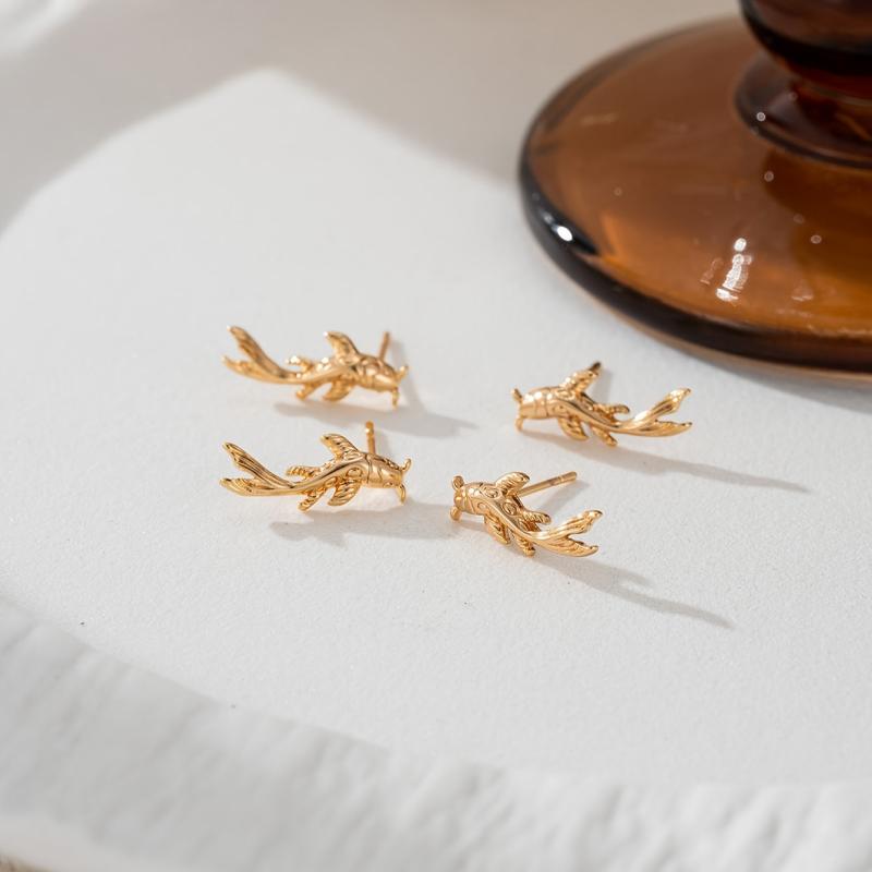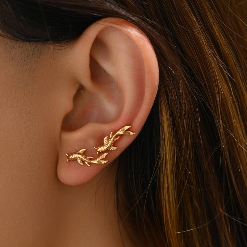 Elevate your style with these stunning copper koi fish earrings perfect for parties or daily use.