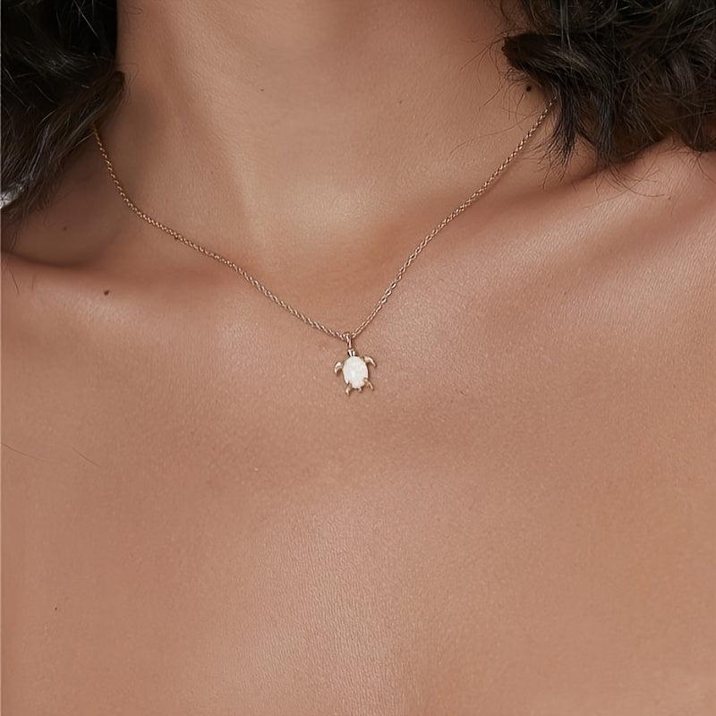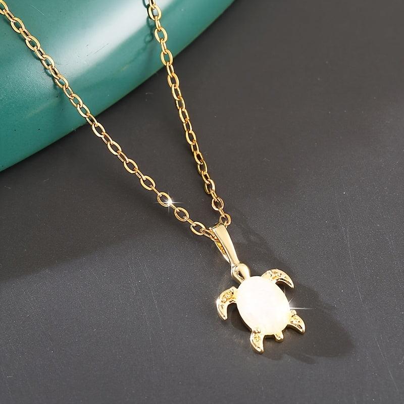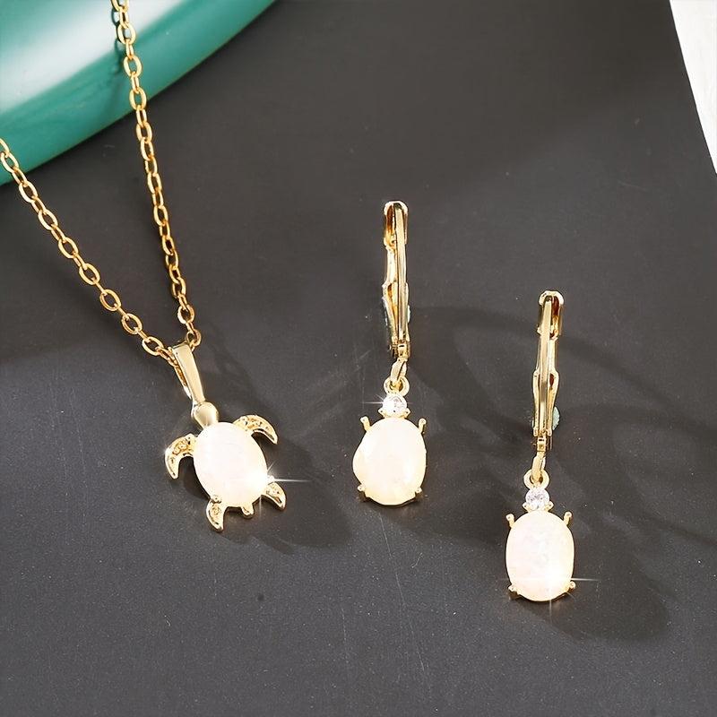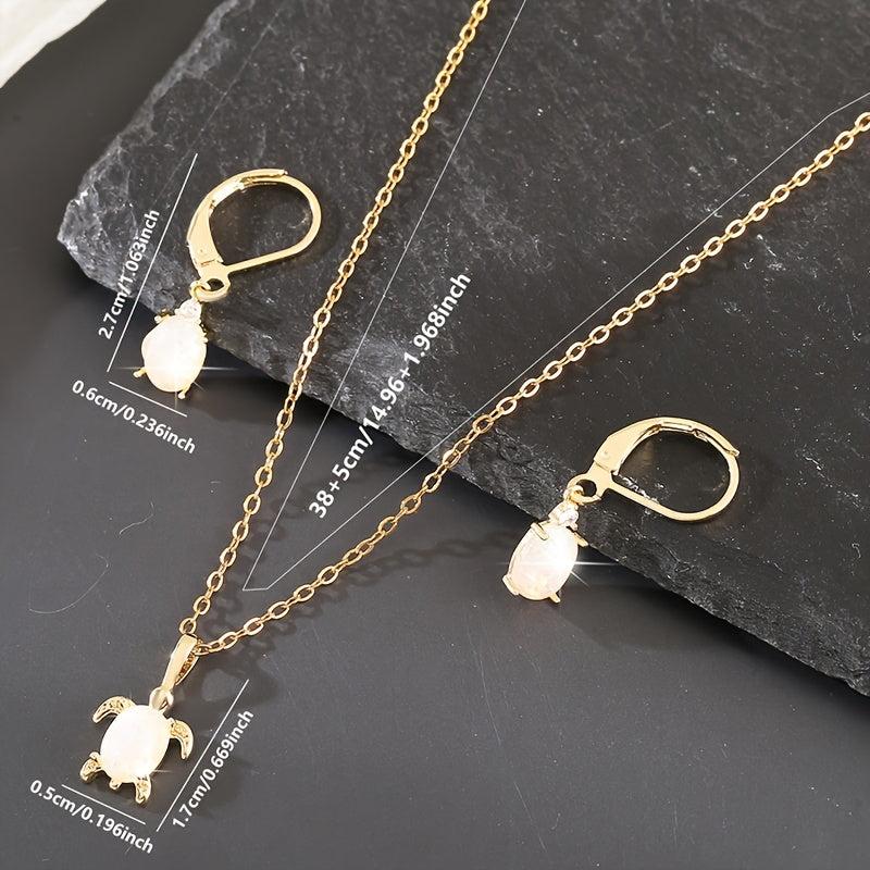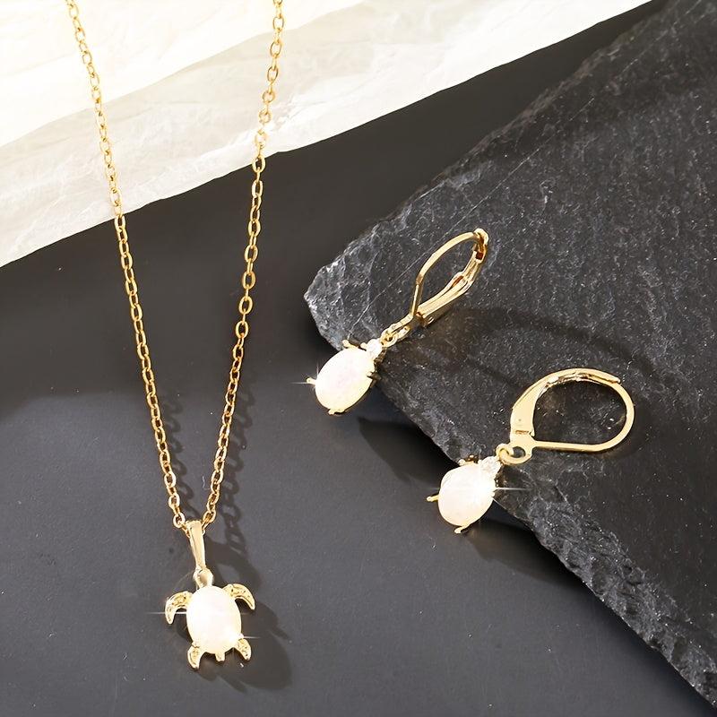 Complete your look with this charming 3-piece set featuring copper inlaid synthetic gemstone turtle pendant necklace and earrings. Perfect for adding a touch of vintage flair to your outfit or as a holiday gift for a loved one.